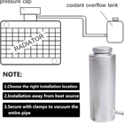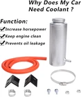 [Keep Engine Clean] Capture the oil and moisture in the helium and reduce the dirt and oil in the engine in the intake system. Keep the engine clean, increase horsepower and maintain engine life [Prevent Oil Leakage] Tight sealing cover, full Tig welding, thread with O-ring gasket, maintain a good closed environment to prevent oil leakage [6061 Aluminum Ingot] Made of high quality thick aluminum ingot, enhanced strength, anodized and polished, durable and long-lasting [Removable Cap] The fuel tank cap can be opened when the oil in the tank is full. Waste oil and dirt in the barrel can be poured out and reused [Quick Installation] Easy to install on the exhaust pipe of the original car, away from heat. Secure with a clip and try to keep the entire pipe in a vacuum Product Description 100% Brand New, Never Been Used. Made of 6061 T6 Aluminum Alloy Material for Lightweight and Durability Prevents Leaks by Helping Relive Pressure While Increasing Horsepower. 7.5" Hts; 3" Round; 8.1" Overall; 800ml Capacity; Universal Fits for All Vehicle. Professional Installation is Highly Recommended (No Instruction Included). It's Add-on Part Which is Not OEM Replacement, Some Minor Modification May Require When You Install. Product Features Prevent Coolant Leakage Tight seal cover, all Tig welded thread, with O-ring seal, maintain a good sealing environment, prevent coolant leakage, making the car safer when working. 6061 Aluminum Ingot Using high quality thick aluminum ingot, strength enhancement, surface through anodic oxidation polishing, not easy to rust, long life, durable. Coolant Back Into Radiator When the coolant begins to cool, it contracts and the vacuum valve opens, causing the coolant flowing into the radiator coolant overflow tank to flow back into the radiator. How Does Radiator Coolant Overflow Tank Work? The radiator coolant overflow tank saves you money by preventing rust in the car's cooling system. When the engine is operating at its optimum performance, engine coolant is required to maintain it within the operating temperature range. Engine coolant absorbs heat from the engine. As the coolant heats up in the radiator, it begins to expand, causing an increase in pressure in the cooling system of the vehicle. When the coolant pressure in the radiator exceeds the pressure cap setting, the coolant is sealed through the pressure cap and flows through the overflow tube into the radiator coolant overflow tank.