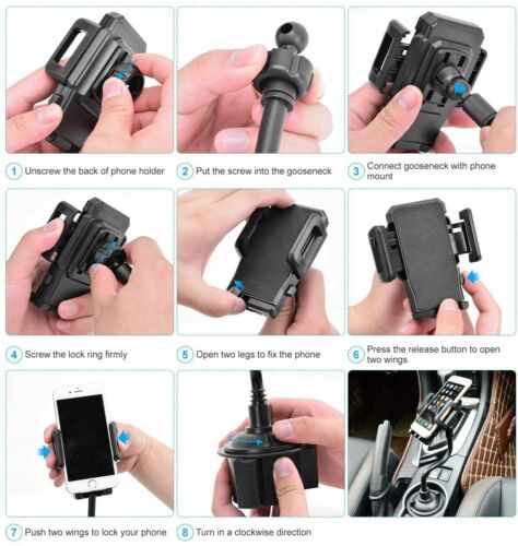 Universal Car Mount Cup Cell Phone Holder Adjustable Gooseneck GPS Stand Cradle