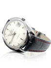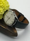 Universal Geneve Polerouter date with microrotor automatic inhouse manufacture patented movement made in switserland 1960s with patented case, and special brand dial with round baton index and red line in center for Polerouter NS models which are extra slim looking. Comes with Bespoke Haroween Shell Cordovan(horse leather) black color strap curved with easy instal pin and zermat leather back, genric buckle. All watches are delivered in luxury besopke wooden box and cover and carry a 2 year warranty for movement. Most iconic swiss watch of 1960 designed by most famous swiss watch designe Mr. Geral Genta and with the first microrotor automatic movement in world. The watch is fully serviced and regulated by qualified Horologist and case has been professionally cleaned and polished The Brand which had stop manufacturing in 1970s and is now being revived by Breitling Swiss watch brand FULLY INSURED SHIPPING