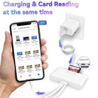 ππ©π π«ππππ 5-IN-1 CARD READER: multiport card reader has USB-A, USB-C and Lightning connectors, allows you to connect almost all cell phones, tablets, laptops and computers. Included 1x SD and TF card port, 2x USB ports and 1x USB-C charging port, meet more of your reading needs. EASY TO USE: memory card reader does not require WIFI, network, drivers or anything, just Plug and Play, very convenient and super easy to use, you can transfer photos, videos and other files between cell phones and memory cards in seconds, no need to wait for the network to load synced files anymore! ππ©π π«ππππ CHARGING PORT DESIGN: Unlike other sd card adapters, upgraded sd card reader for iPhone has a charging port for your iPhone/iPad with lightning ports, you can charge your device while reading the files, no more worry about running out of power during the transfer process especially when large files need to be imported. MULTIFUNCTIONAL CARD READER: Our memory card adapter can connect more than just memory cards but also some USB peripherals like USB flash drives, hard drive, keyboard, mouse and more to let you enjoy a much easy and conveninet working space. All ports of this universal card reader can work simultaneously. WIDELY COMPATIBILITY: Our SD/TF card reader usb splitter supports standard photo and video formats, support iOS and android devices cell phone, tablet, iPhone, iPad and other devices. The micro sd card reader supports up to 1TB memory cards and 512GB USB2.0 flash drives, the USB3.0 flash drives cannot exceed 128G. Any problem, just contact us for full r-ef-u-nd or replacement!