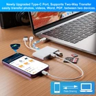 4-IN-1 Multiport SD Card Reader: Universal digital camera adapter iphone card reader featured with Lightning/Type C/USB A three connection interfaces, more efficient access to all cell phones, tablets, laptops and computers. It also equipped with four different ports, included 1x SD card port, 1x TF card port, 1x USB ports and 1x USB-C charging/data port. The SD/TF slot is compatible with SD/SDHC/SDXC/Micro SD/Micro SDHC cards. Note: Our SD card adapter cannot read SD/TF card at the same time. Easy to Use, Plug and Play: Trail game camera SD card viewer has various interfaces, no additional drivers required, no WIFI or network, directly plugging the digital camera transfer to phone card reader into your Lightning/Type C/USB A device and it is immediately ready for use. Supporting OTG function. Transfer your photos, videos, and music quickly and easily, saving you time and hassle, no need to wait for the network to load synced files anymore! Fast Transfer Speed & Unique USB-C Port: Unlike other sd card adapters, our memory card reader has a newly upgraded Type-C port to support charging + data transfer + headphone jack, one port solves all problems. The high-speed two-way transfer from SD card reader can save you a lot of waiting time, experiencing 60MB to 90MB per second transfer speed, it can read different types of memory cards, including SD, TF cards, allowing you to easily manage data between iPhone/Pad/computer and other devices. Multi-function Card Reader: SD card reader for iPhone can connect more than just memory cards but also some USB peripherals, such as USB flash drives, hard drive, mice, keyboards, etc. You can connect your PC, keyboard or mouse to your Phone/Pad/PC via the USB camera adapter to enjoy faster and easier chatting and typing while working, making it a must-have accessory for photographers, videographers, and anyone who needs to access data from various devices. Wide Compatibility: SD/TF card reader USB adapter splitter compatible with a variety of devices including iOS 13 and above/ Android phone/computer, such as Lightning to sd card reader is compatible with iPhone 14/14 Plus/14 Pro/14 Pro Max/13/12/11/XS/XR/X etc, USB C connector is compatible with iPhone 16/16 Plus/16 Pro/16 Pro Max/15/15 Plus/15 Pro/15 Pro Max/MacBook/Samsung Galaxy S23/S22/S21 Ultra/S20 +, Google Pixel and other USB C devices, USB A connector is compatible with computer/laptop/PC and other USB port devices. You Will Get: 1*Multi-function 4-IN-1 iPhone SD card reader. It is compact and lightweight, easy to carry around and save space, digital iPhone camera card adapter is also suitable for all kinds of car camera/trial camera/digital camera memory cards. It is a travel helper for cameras, digital cameras, trail cameras, dashcams, and drones. If you have any questions about our memory card reader, please feel free to contact us, we will reply you within 24 hours.