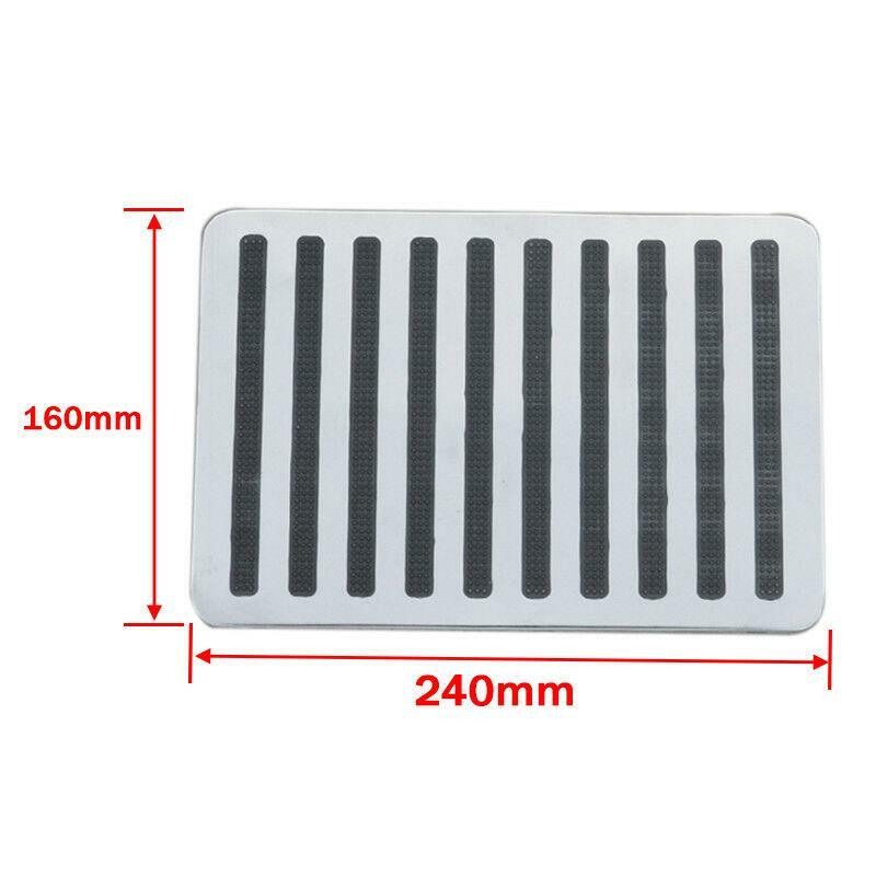 Universal Stainless Car Floor Carpet Mat Patch Foot Heel Plate Pedal Pad 9" x 6" Product Description Universal Stainless Car Floor Carpet Mat Patch Foot Heel Plate Pedal Pad 9" x 6" Item specifics Item Type: Mats & Carpets Item Width:16CM Material Type:Stainless Steel +Rubber Item Length:23.5CM Special Features:All weather,Waterproof, Custom fit Fit:Universal Install Position: On the Driving Postion Included: One Pc Carpet plate with 6 pcs screws Function: It is easy to install to reinforce the driving position slip and it make your car more charming. eBay Cross Border Trade powered by ChannelEffect