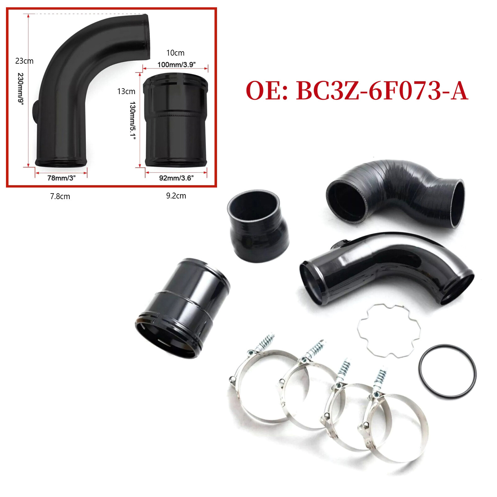 Product Description This High Performance Aluminum Intercooler Tube Pipe Upgrade Kit is designed for Ford Powerstroke F250 F350 F450 F550 6.7L V8 Diesel Engines 2011-2016 Specification: Condition: 100% brand new and high quality Fitment: Direct Fits Cold Side Boot Material: Silicone Boots Tube Material: Mandrel-Bent Aircraft grade t-6061 Aluminum Construction Pipe Diameter: 3" (Lower Section) Pipe Diameter: 3.5" (Upper Section) Boot 1: 3" Boot 3: 3" To 3.5" Feature: The Cold Side Intercooler Pipe & Boot Kit for 6.7L Powerstroke solves the common issues with the factory supplied plastic pipe and intercooler boot, that are known to explode or burst due to the heat and boost levels of your 6.7L Powerstroke. The upgraded design from Our Product increases reliability, durability and performance. Constructed of mandrel-bent aluminum with a polished finish. 100% CNC-machined 6061 aluminum coupling allows you to retain your trucks factory emissions components and allows for a quick install. Constructed of mandrel-bent aluminum with a polished finish. The cold-side pipe eliminates restrictive bends in the factory pipe, allowing for improvements in airflow, power, and EGTs. To add even more reliability this kit includes Constant-Tension T-bolt Clamps for accurate and consistent holding power. This cold-side pipe and boot kit is the perfect addition to your 6.7L Powerstroke truck Fitment: Vehicle Compatible with All 6.7L Powerstroke Diesel Engines Including The Following Vehicles: 2011-2016 For Ford 6.7L F-250 Powerstroke Diesel 2011-2016 For Ford 6.7L F-350 Powerstroke Diesel 2011-2016 For Ford 6.7L F-450 Powerstroke Diesel 2011-2016 For Ford 6.7L F-550 Powerstroke Diesel Please be sure to check the size of this product carefully before ordering to avoid unusable. Part Number: BC3Z-6F073-A Package Included: 1 Set Cold Side Intercooler Pipes If you have any doubts or uncertainty about this item, contact us with no hesitation, we are always here and will solve your problems. Thanks and wish you a nice day! About Us We dedicated to provide excellent products and services for all customers on ebay. hope we all can have a nice experiences on eBay. Payment We accept all verified payment through PAYPAL payment. Shipping Usually, Item will be shipped within 1-2 working day after full payment is received. Normally, you will receive the item in 5-7 days. Please contact us if you don’t receive the items after 10 working days after the payment If you have any questions about shipping, please feel free to contact us. Returns Always believe we can solve problems by communication if it comes to any problems about products or any others. If it comes to a return, the products must be intact and as original when you received, and should be within 30 days after you received it. Contact Us Work time: 9:00 AM to 18:00 PM Beijing Time You can contact us at anytime you want, we will reply all messages at the first time. powered by