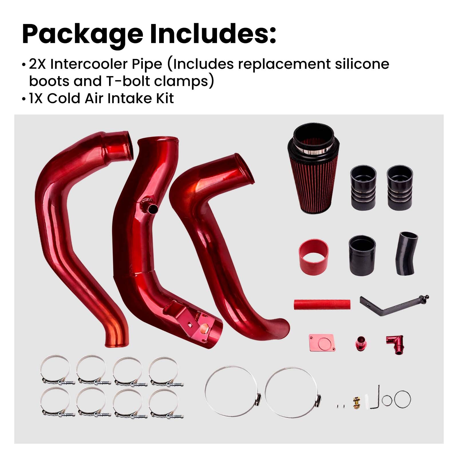 qxaac WHY CHOOSE US Fast Shipping International Shipping 30 Days Return Policy Secure Shopping Lowest Price Price match guarantee Manufacturer We know our products Easy Return Quick, Simple Guaranteed Fitment Always the correct part DESCRIPTION Applaction: for Ford F250 2003-2007 for Ford F350 2003-2007 for Ford F450 2003-2007 for Ford F550 2003-2007 for Ford Excursion 2003-2007 Only Fits 6.0L Turbo Diesel Engines Description: Intercooler Pipe Kit: 100% Brand new Color: Red Pipe & Gray Silicone Boots Aluminum construction for a lifetime of rust free and heat dissipation These aftermarket charge pipes will not split or crack like the factory OEM pipes Heavty duty four ply silicone boots Stainless steel T-bolt clamps Cold Air Intake Kit: This intake will not work on trucks that do not have a factory MAF sensor Does not Require Removal of Turbo, Intake Manifold or Up Pipe CNC Machined Billet Aluminum and Stainless Steel Completely Replaces System, No other Parts Required Pressure Tested and Guaranteed not to Leak Doesn't come with installation instructions Professional installation is highly recommended Package Included: 2 x Intercooler Pipe (Includes replacement silicone boots and T-bolt clamps) 1 x Cold Air Intake Kit Notice: -Instruction is not included. Professional installation is recommended. -Please feel free to contact us for whatever we can help via eBay message. SHIPPING CA Domestic Shipping Notice - All items will be dispatched within 24hrs(Mon-Fri) Our carrier collects all the parcels at 4:30am PDT, any payment paid after 5:00am PDT will be shipped the next day at 4:30am PDT. If you paid Before Apr. 1st at 4:30am After Apr. 1st at 4:30am Item Shipped On Apr. 1st at 5:00am Apr. 2nd at 5:00am Est.Delivery Time Apr. 5th - Apr. 7th Apr. 6th - Apr. 8th If our estimated delivery time and eBay’s are contradictory,please refer to the standard delivery time of ours. Estimated Delivery Time From US Outside of US To US Service UPS or Fedex Ground DHL FedEx Est.Delivery Time 3-5 Business days 4-7 Business days ◆ Tracking number will be updated in 24 hours after shipment ◆ Please provide the following shipping information for your order Otherwise your shipment will be deferred. We are not responsible for any shipping lost caused by wrong shipping information Shipping rate If our ebay item listing doesn't show the shipping cost to your place.Please contact us to calculate the shipping fee for you. International Shipment For international shipment, we do not cover any import taxes or duties. Import tax is charged by the government, not us. Our item price and shipping cost do not include any import tax which will be charged by the shipping company when you got the parcel. Please be noted that is not the extra shipping fee. WARRANTY We aim to provide you the good buying experience, 30 days return policy is offered in our store. Please follow our return policy before you return any item(s): If you are unhappy with your purchase for any reason, you can return it to us in an un-used condition in the original packaging within 30 days of purchase and we'll give you a refund or exchange. The refund/Exchange will not include postage/eBay costs. Please note you MUST contact us to obtain a Return Authorization Number before returning any part. Any parcel without the Return Authorization Number will be rejected. If your item is faulty or was incorrect, you must contact our sales representative before returning the parcel and we will endeavour to solve the problem effectively. Video or picture is required to show the item condition before we issue the Return Authorization Number. Important notice 1. Any returned item(s) without Return authorization number will be rejected . 2. Please return your item(s) in original packaging and ensure that all packages are securely wrapped . 3. We will not accept responsibility for loss or damage of goods during transit, please ensure that the insurance cover option is taken where possible . 4. Upon receipt, all products will be inspected at our discretion in 3-5 business days. Then, the updated result will be informed . If you have made a mistake on purchase and wish to cancel the order before it is dispatched please contact us by ebay message as quickly as possible. Note: All parcel will be collected by carrier at 8:00am on Monday to Friday. FAQ ★ Will this fit my car? We have used the eBay compatibility list as a guide for buyers to use, but the eBay data system is not accurate and incomplete sometimes. Please make sure you have read through the whole listing and paid attention to “note” and “notice”. If there is any uncertain, please use the eBay message to check with our sales first. ★ How much does delivery cost and how long will it take? You can check the delivery cost in the listing “Shipping and payments” section by selecting your country and entering your zip code. If it is not specified, please provide us your shipping address and zip code via eBay message. For US domestic shipping, the delivery time is around 2-5 business days. The international shipment delivery time is around 5-10 business days. ★ What payment methods do you accept? We currently only accept payment via PayPal. You can also use PayPal as a guest and pay using a debit or credit card. ★ When will my order be dispatched? We will arrange the shipment in 1 business day after the payment is cleared. The tracking number will be updated on eBay in 24 hours after the shipment. Please notice that there is no shipment during weekend and holidays. ★ Can I amend my order? Sorry no. Once the payment is cleared, we cannot amend any item(s), quantities, or add or remove items. We are also unable to change the delivery address. Therefore, please double check all the order information before making payment. ★ What do I do if I have not received my order? Please simply contact us via eBay messages, and then, we will get back to you as soon as possible with the update. Usually, we w