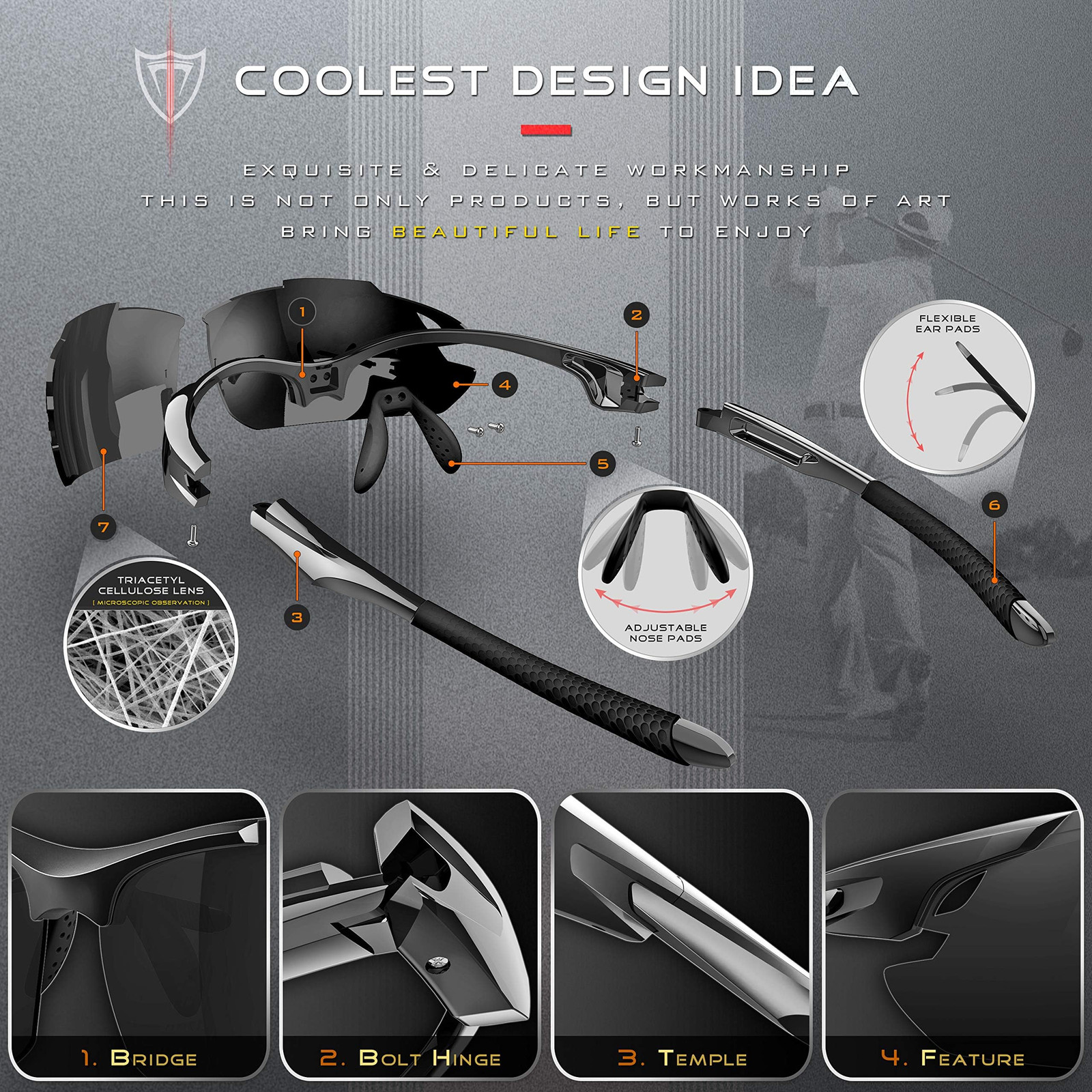 HD POLARIZED & UV PROTECTION LENS - With UV400 protection coating, men's sunglasses can block harmful UV Rays. Polarized lenses will reduce glare, eliminate reflected light and scattered light, restore true color, perfectly protect your eyes. ULTRA-LIGHT TR90 FRAME - men's sunglasses are made of TR90 material, it is only half weight of plastic glasses, and two times sturdy than it. Lightweight design is ideal for usage by motorcycle and cycling, driving, running, fishing, climbing, trekking or other outdoor activities enthusiasts. Skidproof Design Temple:It make by ultra-light silicone material,Soft, can be bent greatly. The leg covers is inspired by the texture of golf, which make this Polarized Sports Sunglasses stronger sense of contact, better comfort, not easy to slip. EXQUISITE PRESENT OPTIONS & PREMIUM PACKAGE: polarized sunglasses for men are wonderful present for Father, Husband, Son, Boy Friend or Family. Each pair includes a zipper case, box, microfiber pouch, cleaning cloth, and polarization test card. VERSATILE OUTDOOR EYEWEAR FOR OUTDOOR SPORTS ENTHUSIASTS 24/7 ONLINE INFORMATION INQUIRY: If you have questions about the fit, lens clarity, or frame durability of your sunglasses, please click our name below and select 'Ask A Question.' WE WILL PROVIDE PROMPT ASSISTANCE TO ADDRESS YOUR CONCERNS