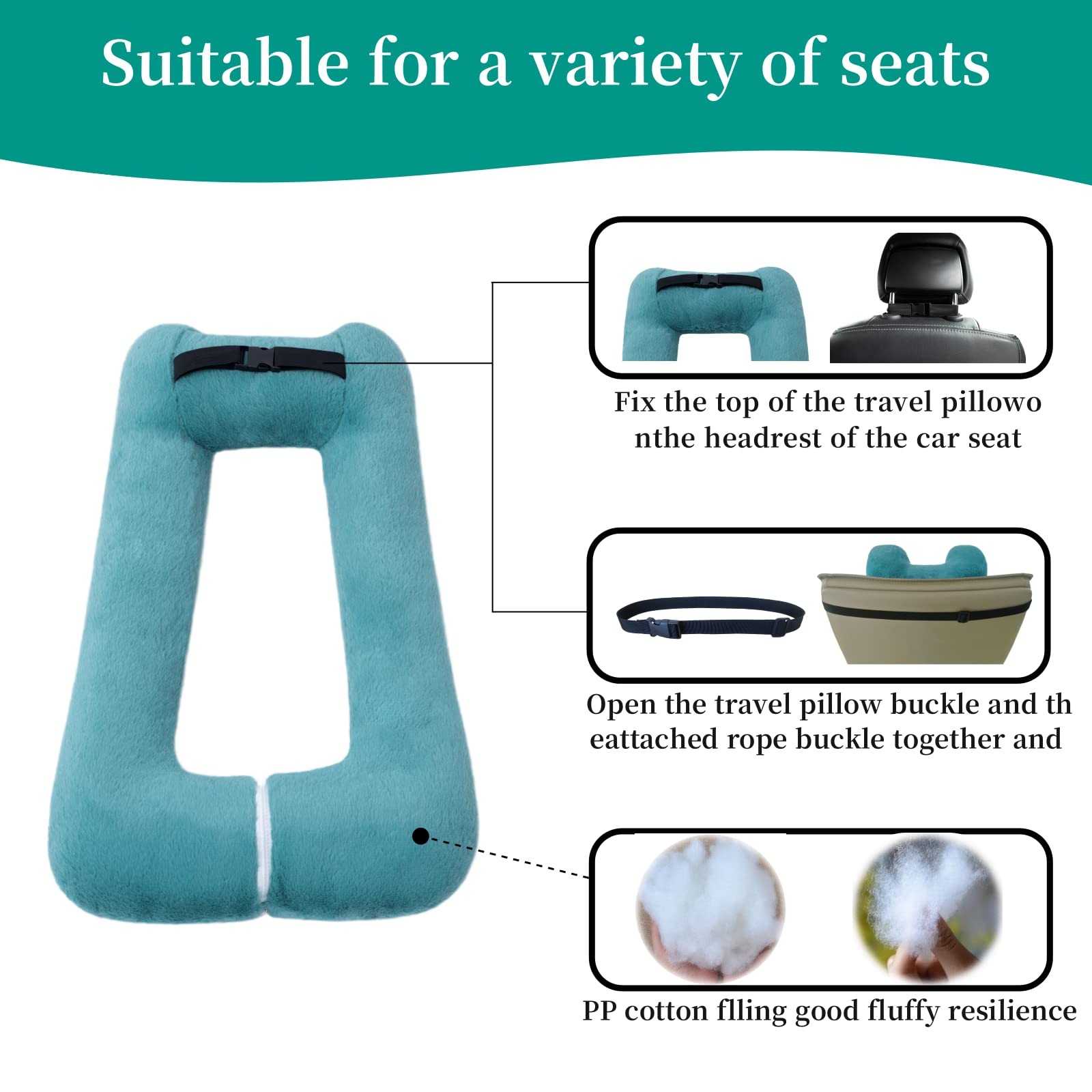 In order to make people rest and sleep more comfortable during the journey, we have researched and launched this travel pillow. The travel sleep pillow is a powerful all-round support pillow, It not only provides head and neck support, but also provides body and arm support, making you and your family more comfortable and happy during air travel and road trip. Combined with ergonomic design, the travel pillow can perfectly fit the head and neck, and help you maintain the correct sitting posture during the journey. When we fall asleep during the journey, our body and head will tilt left and right due to lack of support, which can be very uncomfortable. travel pillows can effectively solve these problems. The back of the pillow is equipped with a detachable and adjustable extended fixing strap, which adopts a buckle opening and closing design to secure the travel pillow to various seats. The bottom is designed with a zipper opening and closing, making it more convenient to use and disassemble. In order to make the travel pillow more soft and comfortable, we have used high imitation rabbit fur fabric, filled with enough PP cotton inside. It is larger than a typical travel head, so it is more comfortable. To make carrying more convenient, we have added a travel bag that can compress the pillow and put it into the travel bag for carrying and storage. Fabric: High imitation rabbit fur fabric,Internal filling: PP cotton,Size: 24.8 × 18.1 × 4.7 inches,4 colors: gray, pink, blue, emerald green,Package List: Travel Pillows × 1. Fixed strap × 1. Travel bag × 1. Material: The travel pillow is made of imitation rabbit fur fabric,filled with enough PP cotton, which is very soft and comfortable. The fabric has constant temperature characteristics. It is warm in winter and cool in summer, not shedding, and does not fade. Exquisite Design: The upgraded travel pillow has added neck support function based on ergonomic design. The curvature design at the top of the pillow can perfectly fit and support your neck and head. The middle of the pillow features a cylindrical design to provide body support, and the bottom of the pillow adopts a zipper opening design for more convenient use. Travel essentials: When traveling by train, car, or plane, use the travel neck pillow. It can provide head support, neck support, body support, and arm support, allowing you to maintain the correct sitting posture to prevent body tilting, provide a comfortable sleep environment, solve people's rest and sleep problems during travel, and enjoy a comfortable and pleasant journey. Usage: The back of the pillow is equipped with adjustable fixing straps, which can be fixed on various chairs such as airplane seats, car seats, train seats, etc. It can also be used for rest at home and in the office, making it a good travel sleep pillow. Airplane Pillow, Neck Pillow. Easy to carry and clean: The travel pillow is equipped with a sturdy and durable canvas travel bag, which can be compressed into the travel bag for easy carrying during travel. It can be placed as a whole in the washing machine for cleaning and rotated to dry.The travel pillow is packed in vacuum compression. When you open the package, it will keep expanding. You can shake it and tap it gently to help it recover. It may take twelve hours to recover to the best state.