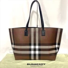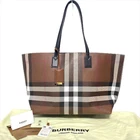 Used beautiful item BURBERRY Dark Birch Brown Check Tote Bag