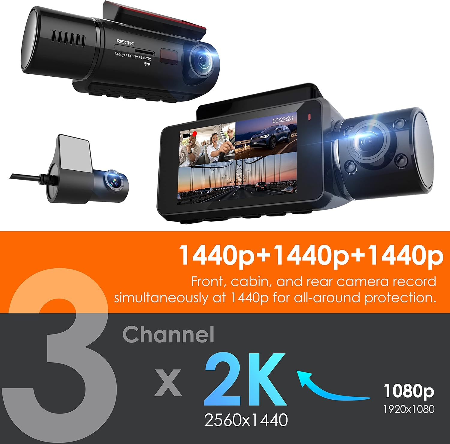 Store New Arrivals Add to Favorite View Feedback Contact V33-2K 3 Channel Dash Cam Built-In Wifi GPS, Car Dashboard Camera Recorder 1440P + 1440P +1440P, 2.7” LCD, 170° Wide Angle, G-Sensor, Night Vision, Parking Monitor Description 3 Channel All-Around 2k Recording - The V33 is our best performing front, cabin, and rear facing dash cam. All three cameras feature 2k resolution(1440p + 1440p + 1440p) for the highest quality recording capabilities. A tri-camera system provides total coverage–both inside and out! Perfect for ride-sharing drivers. With 170 degree ultra wide angle lenses, each camera seizes broad views for a full picture of your surroundings. Discreet Design - The V33 has a sleek low-profile design made for discreet installation. With its shape, size, color, and mount location, the dash cam is essentially camouflaged after being mounted to the vehicle. The camera’s cylindrical shape is made to take up little space on your windshield. Super Night Vision - All three cameras reliably capture clear and usable footage at night or in other low-light situations. Wide dynamic range supports each camera in performing optimally in the absence of light by automatically fine-tuning the exposure. Built-in WiFi & GPS - The WiFi feature allows you to pair your phone with your dash cam and easily download/view footage. This can be crucial in the event of an accident to know exactly what happened on the spot. The GPS feature logs the speed and location of your vehicle with Google Maps integration. This can be helpful to dispute speeding violations as well as offer more information in case of an incident. Supercapacitor & Parking Monitor - Power is efficiently delivered through a reliable and highly durable supercapacitor. This battery type provides a wider operating temperature range than most models: -20 to 176 degrees F. With parking mode, the dash cam is on alert for motion even when your vehicle is turned off. When the camera detects movement it will start to record and then turn off again to save energy. G-Sensor & Loop Recording - The G-sensor detects the impact of a crash or a sudden slam of your breaks. When this happens, it will automatically lock the footage so that it doesn’t get deleted. Loop recording ensures continuous recording even when the SD card reaches capacity by overwriting older footage that is unlocked. This will help you avoid having to manually delete your videos. Simple Installation - Simple & easy to mount on windshield which makes for an overall straightforward installation process. Need help? Email or call our personal LIVE CUSTOMER SUPPORT. We stand behind our products with a***18 Month Warranty *** Product Description Capture Crisp Footage of Your Vehicle's Front + Rear + Cabin All In 2K (2160p) For 170° Protection Inside & Out Card Requirements Class 10 / UHS-I or higher MicroSD/SDHC/SDXC memory card up to 256GB (not included). Card Recommendations RexingUSA 64GB microSDXC UHS-3 4K Full HD Video High Speed Transfer Monitoring SD Card with Adapter (ASIN: B0BQCXZ8G6) RexingUSA 128GB microSDXC UHS-3 4K Full HD Video High Speed Transfer Monitoring SD Card with Adapter (ASIN: B0BQCZ64CP) RexingUSA 256GB microSDXC UHS-3 4K Full HD Video High Speed Transfer Monitoring SD Card with Adapter (ASIN: B0BJ5YG788) ABOUT US Welcome to our Ebay store! FAST FREE SHIPPING ON ALL PRODUCTS! Please look through our selected quality items to see if you can find what you are looking for or to discover new and exciting things. Our main goal is to bring you the best services which includes quality products at the best prices, fast free shipping and great customer support ! SHIPPING We ship to the Lower 48 States only (Does NOT include Hawaii or Alaska) We cannot ship to PO Boxes/APO's We cannot combine shipping. No Local Pickup. NOTE: we ship from multiple locations We offer FREE STANDARD DELIVERY 2-8 business days within USA. The item will be shipped directly from our supplier. RETURNS We have a NO returns policy on this product , but we will make sure you receive it in perfect condition( in case of damage on arrival let us know within 2 days for a solution/replacement). PAYMENT We accept PayPal. CONTACT US This page content is yet to come Please ad us to your favorite seller and visit again later Thank You CUSTOMER SATISFACTION If you have a question about a product not otherwise answered in the item description, please contact us via eBay messages first and allow us the opportunity to help you. Your satisfaction is our #1 priority ! In any situation before opening a case please do contact us for a resolution!!