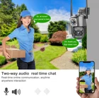 Mains Features : 1. 2K 4MP (2MP+2MP) HD Dual Lens Network IP Camera For Indoor&Outdoor 2. Dual light source design, built-in 8 pcs infrared light + 8 pcs white light, night vision infrared and night vision full color can be set; 3. Pan&Tilt: horizontal 0~350 degrees, vertical 0~90 degrees; 4. 2.4G WIFI + RJ45 network port for Internet access; 5. power supply DC 12V/2A 6. Dual Design, Support SD / TF storage and cloud storage; 7. Two-way voice intercom, two-way video synchronous recording and playback 8. Humanoid detection/vehicle detection/pet detection/other detection 9. Automatic tracking/movement alarm, alarm output sound and light linkage; 10. AI intelligent algorithm to achieve video 3D positioning and continuous tracking of target alarms; 11. Support Android/IOS APP remote management (V380 Pro). Real Two Way Audio Notice: APP: V380 PRO does not support 10XZOON 350° Pan Rotates & 90° Tilt Rotate Rotates 350° Horizontally and 90° Vertically, 80° View Angle You can control it in the "V380 Pro" app directly whenever you want and wherever you are . AI Humanoid Detection When the security ip camera detect motion, Led show up to scare thief. This security analyzes visitor's body shape and identify human immediately. This smart home camera will capture the human's abnormal movements. Dual Screen Live video one camera can monitor two positions,which is equivalent two cameras,saving you more money. IP66 Waterproof / Dustproof The camera case is made of high-quality ABS plastic, which is waterproof, sun-proof and dust-proof. It is suitable for any environment.