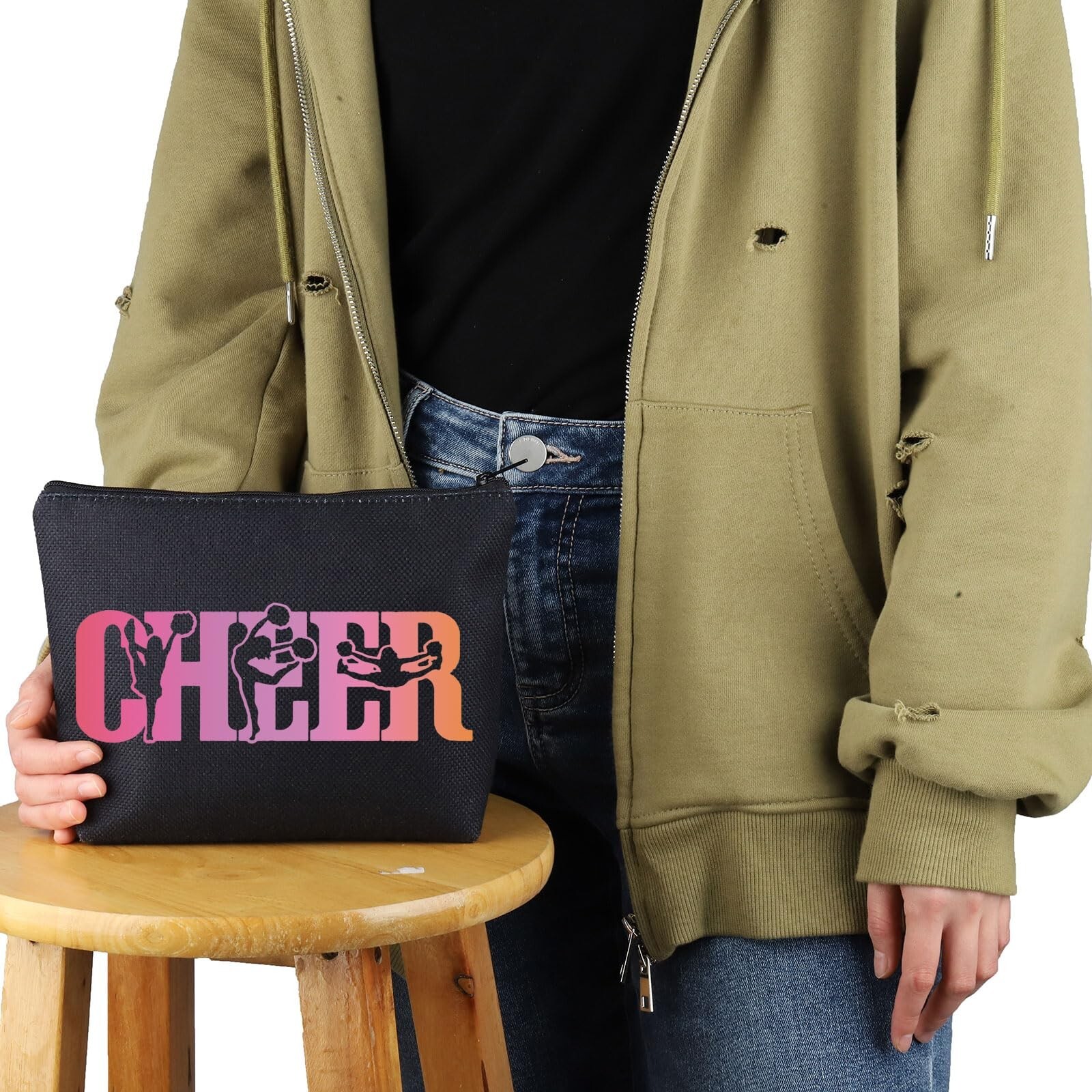 This makeup bag is perfect for cheerleaders and anyone who loves a sporty vibe! The black canvas fabric is durable and easy to clean, while the spacious interior holds all your essentials. The zipper is smooth, and the cheer-inspired design adds a fun touch. Great for travel or everyday use—ideal as a gift or for yourself!