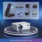 VANKYO Leisure 470 Mini Projector,1080P Supported, Movie Projector for Outdoor & Indoor, with Roku Express streaming player INCLUDED Native resolution is 1280x720P, but 1080P supported. Aspect ratio is 16:9/4:3. The lamp life is up to 50,000 hours, MStar Advanced Color Engine and 3500: 1 contrast provide vivid color and powerful contrast of images. The built-in 3W*1 stereo speakers gives you immersive movie experience. It is the perfect choice for movies, live broadcasts and games. HDMI enables connection to laptop, TV, DVD players,PS3,PS4,X-Box One or Wii. ✔720P Native Resolution With 1280x720P native resolution (1080P supported), 3500:1 contrast, and 90% NTSC, it ensures clear, realistic, and realistic reproduction of details. So sit back and relax, enjoy a great replica with your loved ones or yourself. Enjoy wonderful life! ✔The optimal projection distance is 9.84 feet to achieve an optimal projection size of 90 inches. You can enjoy a visual feast in the widescreen while placing the mini projector flexibly anywhere! ✔Built-in Hi-fi Stereo Speaker The powerful video projector also comes with a built-in stereo speaker to produce a high-fidelity sound effect. Also, you could experience extra sound quality with external speakers via a 3.5mm AUX cable(Not Include). You will enjoy the pleasure of listening! ✔Flexible Multimedia Connectivity Equipped with 2*HDMI ports, USB port, AV port, this LCD projector easily compatible with TV Box, TV Stick, Chrome-cast, PC, laptop, tablet, external speakers, Play-station, DVD player, card reader, USB stick, media players, iPad, iPhone, Android smartphone. ✔Advanced Dual Cooling Fans The latest technology of the dual-fan system based on the advanced noise reduction technology has solved the annoying airflow problem of overheat and noise. With the system, the mini projector could work smoothly and quietly by ensuring you a relaxing time. On Oct 23, 2024 at 03:32:53 PDT, seller added the following information: On Nov 16, 2024 at 00:49:51 PST, seller added the following information: