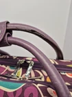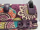 Please look at photo's . Very clean inside and outside . Visible usage on different areas , all shown in photo's . Thank you . This Vera Bradley Carry-On is a retired piece in a beautiful purple color with a plum crazy design. It has rolling wheels for easy transportation and is perfect for travel. The bag is 17 inches in size and has plenty of space for all of your essentials. It features a sturdy handle and is made by the well-known brand, Vera Bradley. This carry-on is perfect for anyone looking for a stylish and functional travel accessory.