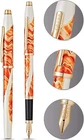 SOLDOUT VERY RARE VERY RARE CROSS CENTURY II WANDERLUST ANTELOPE CANYON FOUNTAIN PEN NEW GIFT Wanderlust features a patented design process which layers rich, swirling designs and metallic engravings into white lacquer. The Maltese-inspired blue design is on white lacquer with gold-plated engravings and appointments. The Antelope Canyon-inspired design features white lacquer with gold-plated engravings and rose gold-plated appointments. The Borneo-inspired green design is on white lacquer with gold-plated engravings and appointments. Each an individual statement. The up-close beauty is beyond description. We think this elegant pen is the perfect traveling companion. The ballpoint is a twist-top action by Cross and may be the best around. Included is one medium black ballpoint refill. The Wanderlust collection is inspired by iconic natural landscapes. Bright colored motifs with golden lines adorn the white lacquered barrel and cap of this collection. The names and chosen color combinations refer to fiery canyons and ice-slicked mountaintops, crystal-blue seas and lush green rainforests.
