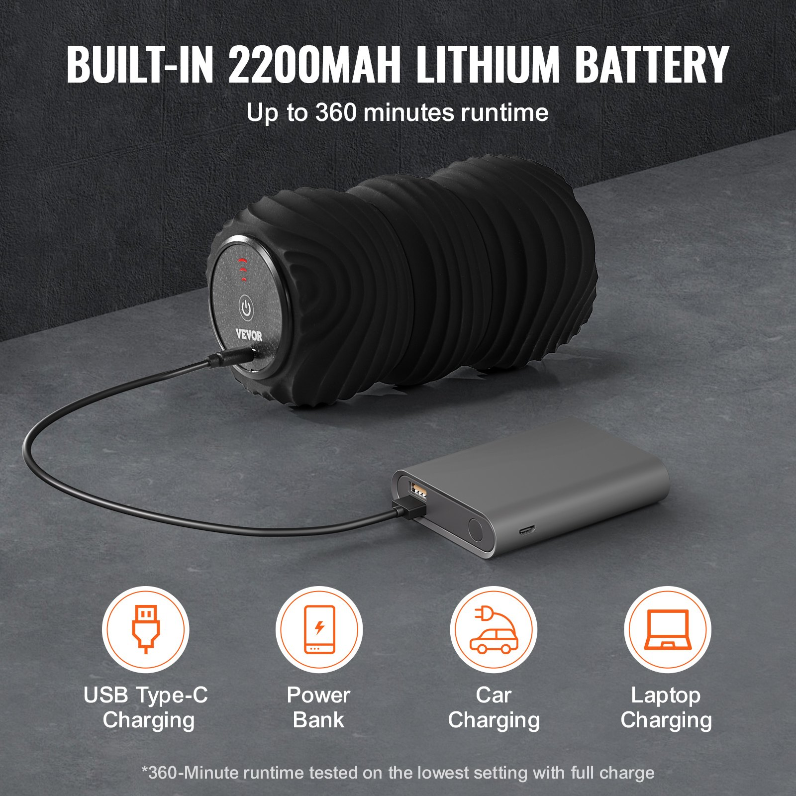 VEVOR Vibrating Peanut Massage Ball 4 Intensities Rechargeable Massage Roller Deep Muscle Relaxation, Meet Your Needs User-Friendly Charging Design Convenient Use Durable and Comfortable Compact and Portable Automatic Shutoff for Safety Power Cord: USB to Type C,Capacity: 2200mAh,Battery: Built-In Lithium Battery,Item Model Number: HY-5011,Vibration Function: 4 Vibration Intensities,Product Weight (Including All Accessories): 1.9 lbs / 860 g,Product Dimensions: Φ4 x 6 in / Φ92 x 160 mm,Main Material: Silicone,Timer Function: 15-Minute Auto Shut-off