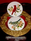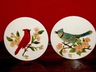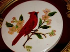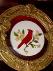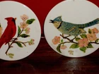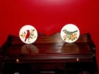 ONE SINGLE PIECE : We have listed ( in separate listings!) two different Wheeling tile paintings, with birds, one red, one blue (Please check!). If you buy both of them, we offer FREE SHIPPING for both! This listing is for the red one(One piece only!): Antique Vintage Wheeling Ceramic Tile Trivet Red Bird Cardinalis Hand-painted and Signed by Artist: NRN 59. A rare find! The author is one of those artists to view the natural world of birds, animals and plants as a subject worthy of attention. Lovely northern cardinal ( Cardinalis cardinalis) painted on a blossom tree. Native American lore holds that if you have encountered a cardinal, expect good luck to follow, possibly in 12 hours, 12 days, or at noon or midnight. Marked WHEELING on back (Wheeling Pottery USA) SIZE: Measures approx. 6" in diameter and 1/4" thick. Artist signed, with initials, and dated: NRN 59. Has a metal ring on the back, so it’s ready to hung and enjoy; you could be also have these 2 tiles matted and framed. Good condition, with minor imperfections, noting noticeable. A great addition to your collection! GREAT DEAL for you! You will absolutely love this mini painting on tile! REALLY SUPERB! - don't miss this one! Coming from a PET FREE, SMOKE FREE HOUSE! ATTENTION: The round framed mirror tray was used for presentation; for sale is the Ceramic tile only. Please enjoy checking on my other items also and let me know if you would like any additional information. Thank you!