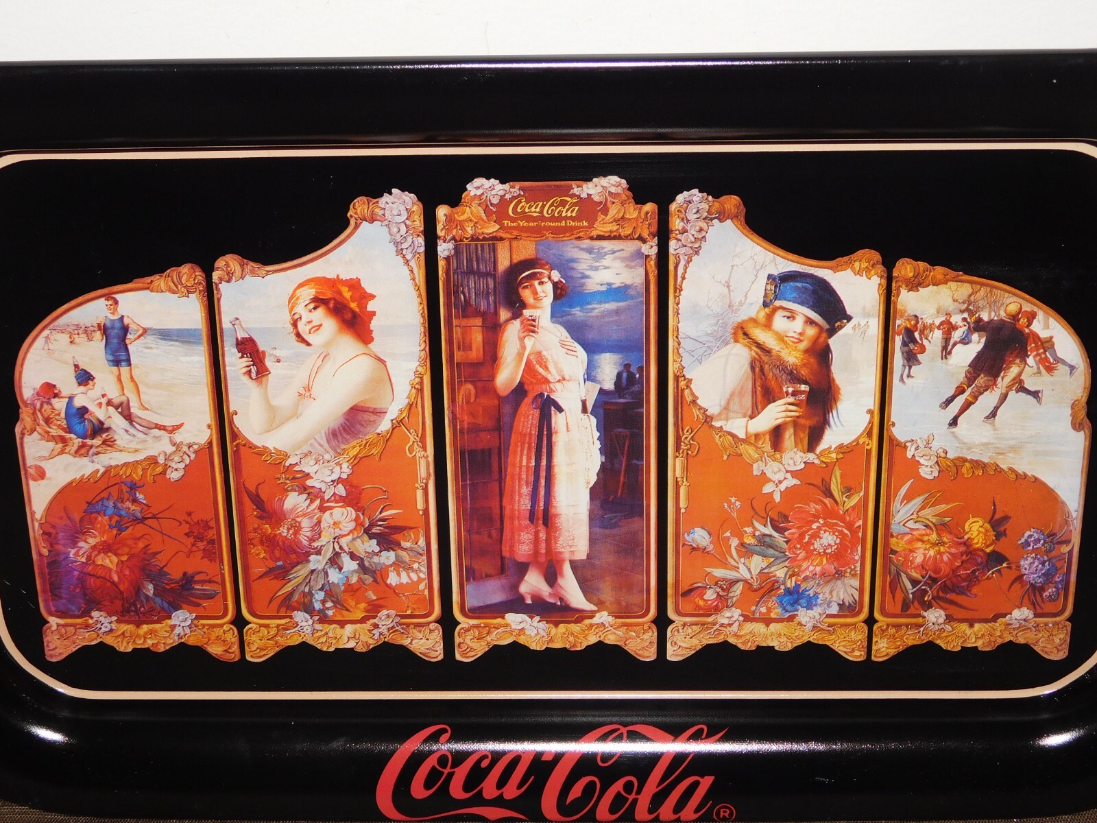 YOU ARE BIDDING ON..... VINTAGE 1989 COKE COCA COLA METAL 14 1/4" X 8 3/4" SERVING TRAY ...SHOWS USAGE/HANDLING/AGE WEAR..HAS SCRATCHES/PAINT LOSS/AGE DISCOLORATION...... PLEASE VIEW PHOTOS FOR CONDITION.***PLEASE E-MAIL IF YOU HAVE A QUESTION OR WANT AN ADDITIONAL PICTURE....PLEASE VISIT MY EBAY STORE FOR ADDITIONAL VINTAGE ITEMS..THANK YOU***12VBX3661-XXXX