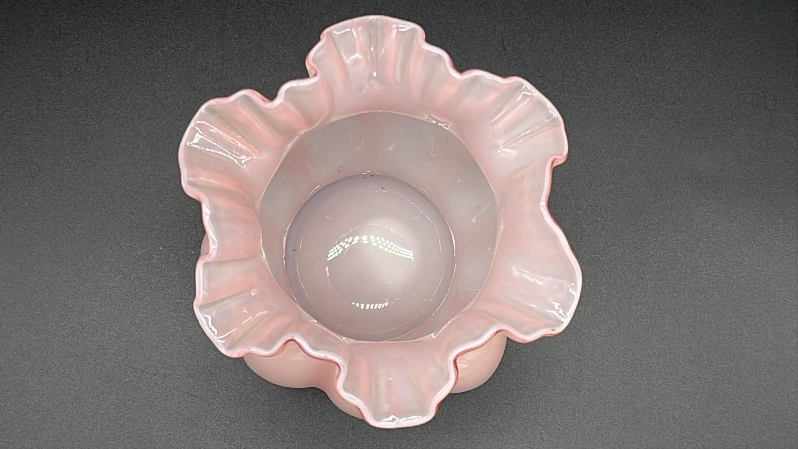 The Vintage Fenton Rose Overlay Double Ruffled Rose Bowl Vase is a beautiful and elegant piece of decorative glassware. Hand-blown in the Americas, this vase features a delicate pink color and intricate ruffled design, perfect for displaying a rose or as a standalone decorative piece. Crafted by the renowned brand Fenton, this vase is a true art glass masterpiece that adds a touch of vintage charm to any space.