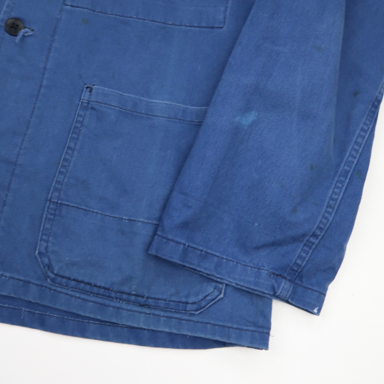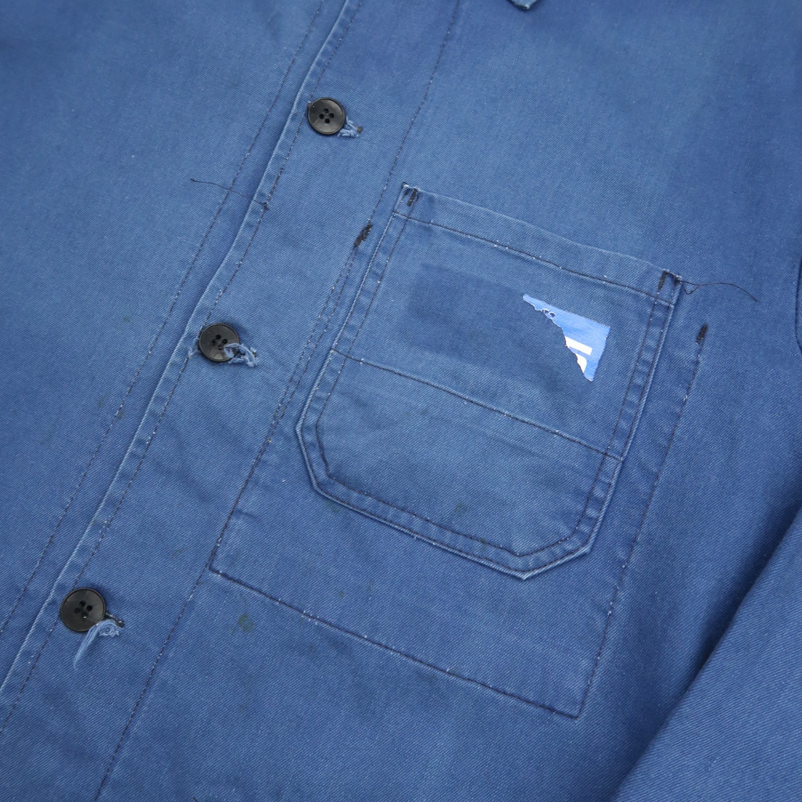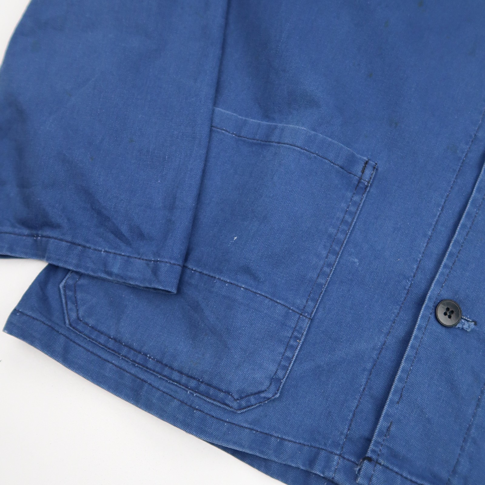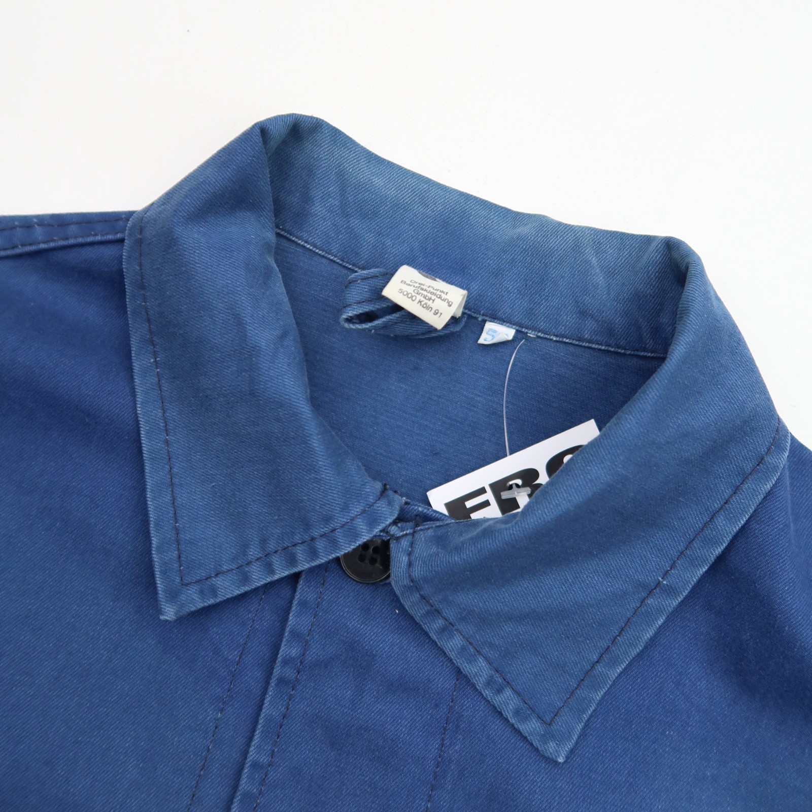 Vintage Navy Blue EU French style Worker/Chore Jackets Tag size/Guide size: LARGE EU 52 (Please check measurements below) Condition: wear, fading and marking for that worn in vintage look ( see pics) This listing is for a genuine vintage french/EU style chore jacket, Deadstock unworn. This style jacket does vary in size depending on manufacturer so please check the measurements below. Unless otherwise stated all of my items are pre worn vintage items and will show signs of wear. Please note some of these jackets even deadstock may show signs of storage wear or marking, if deadstock many of these jackets are heavily starched so will require washing to soften them up, all items have been steamed . We have many deadstock (unworn) chore jackets in our store as well as heavily worn jackets for people wanting a more authentic worn in look. We have all sizes available. Measurements Pit to pit: 24" Underarm To cuff: 22" Length (Nape of neck to hem) : 28"