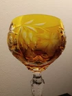 The Vintage Nachtmann Traube Crystal Hock Wine Glass made in Bavaria, Germany. This round-shaped glass feature a beautiful amber color and intricate Traube pattern, typical of Nachtmann's craftsmanship. The 21cm height and 8cm diameter.