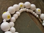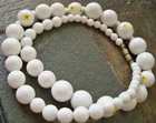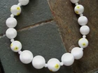 white, true white, not winter white, this is true white, one necklace old original 60s floral print plastic beads to match any brooches you may love, etc, beads are trending! has some patina of age on metal, it's all original, so cute! inventorykarmoireD4