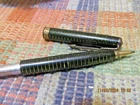 VINTAGE PEALIZED GREEN STRIPE BLACK JEWEL PARKER MECHANICAL PENCIL UP FOR BID. EITHER GOLD FILLED OR GOLD PLATE METAL ACCENTS. NO CRACKS, NO CHIPS AND NO RUST. LEAD IN CHAMBER, ERASER UNDER CAP, MADE IN USA, AND DISPLAYS VERY WELL. GOOD LUCK!!