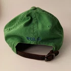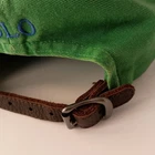 This vintage Polo Ralph Lauren baseball cap is a must-have for any classic fashion lover. The green canvas material and adjustable leather strap back make it a versatile addition to any wardrobe. The blue Polo pony logo adds a touch of sporty charm to the hat, making it perfect for casual occasions or travel. The hat features a solid pattern and adjustable strap for maximum comfort. Its unisex design makes it suitable for both men and women, while the vintage style and 90s sports theme make it a unique and timeless accessory. Whether you're looking to add a touch of Disney magic to your outfit or simply want to showcase your love for the iconic Polo brand, this hat is the perfect choice. In great condition.