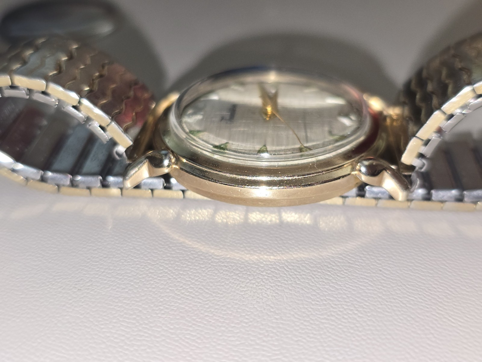 A beautiful Tradition watch by Sears Roebuck for men. The watch has a beautiful gold plated case and dog leg lugs.the crystal has almost no water or discernible marks. The dial is a beautiful linen style with a light patina.