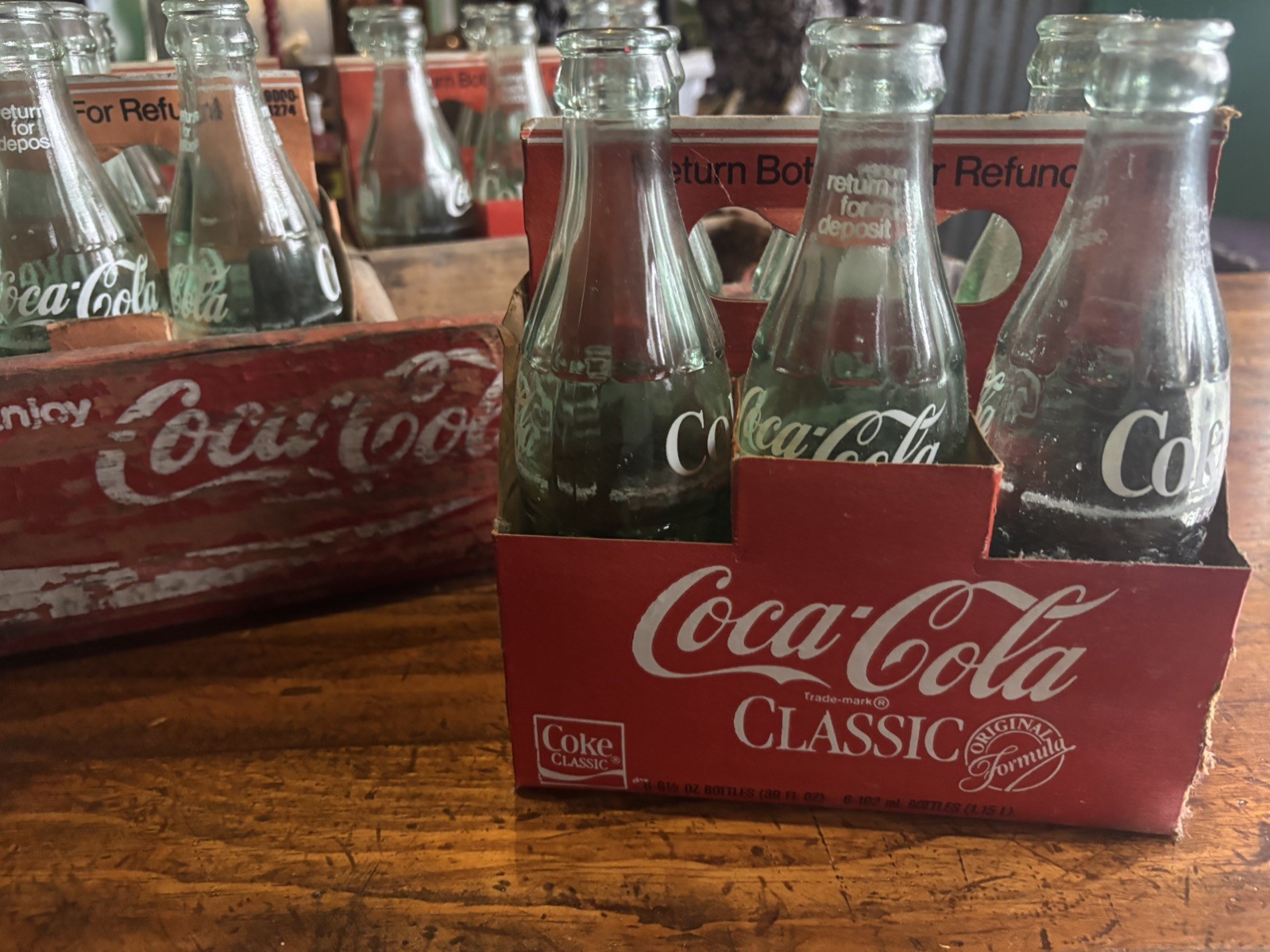 The VNTG Coca-Cola Wooden Soda Crate and 4-6 packs of bottles in carriers are a nostalgic and vintage collectible set perfect for any Coca-Cola enthusiast. The red color and soda theme add a nostalgic touch to any space, whether it's a bar, man cave, or kitchen. The wooden crate provides a sturdy and stylish storage solution for the included bottles, making it a great addition to any vintage soda collection.
