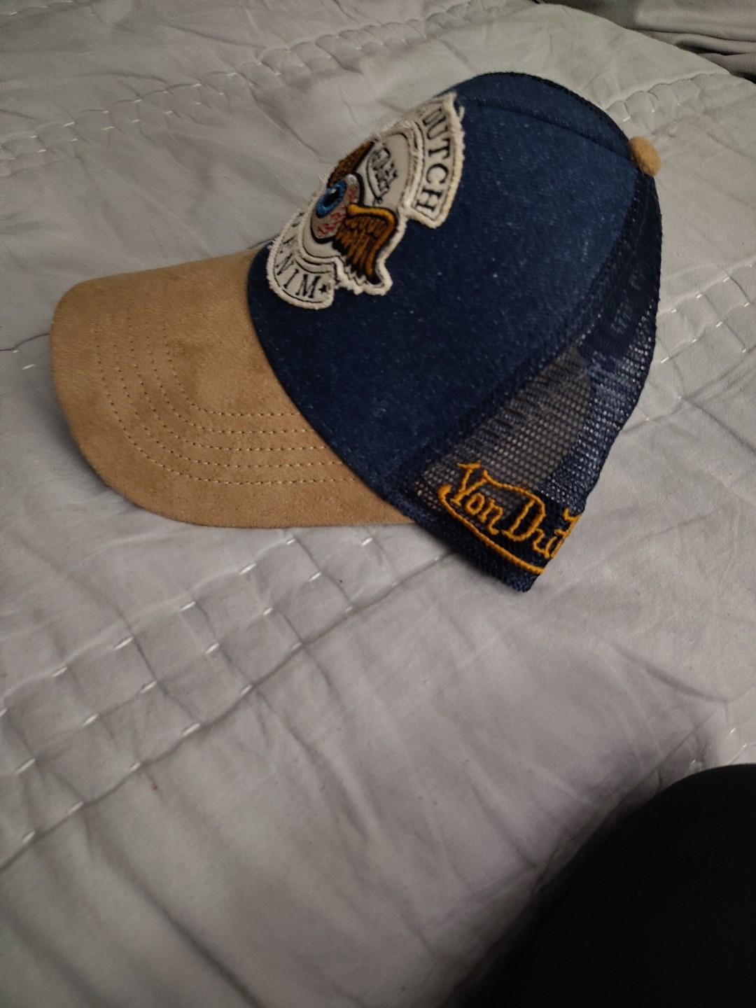The Von Dutch Blue Denim/Khaki Faux Suede Snap Back Trucker Hat is a stylish and versatile accessory suitable for various occasions, including travel and casual wear. Made from a blend of polyester and cotton, this lightweight hat features a colorblock pattern with a denim fabric that adds a classic retro touch. The adjustable snap back closure and breathable mesh back make it comfortable for all-day wear in any season. Perfect for both men and women, this unisex hat is a trendy addition to any wardrobe, reflecting a sense of USA-inspired style.