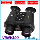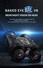 Digital zoom: 6x digital zoom Objective Lens Diameter: 25 mm Low light visual distance: 1.5 m ~ infinity Power supply: 3000mAh polymer lithium battery Storage temperature: -30℃ to +60℃ Model: VRNV300 - 3DVR Application: Birding, General Purpose, Hunting Maximum Magnification: 6x Operating buttons: 11 buttons Visual range in total darkness: about 100-150 meters MPN: Does not apply USB port: TYPE-C gtin13: Does not apply Operating temperature: -20℃ to +50℃ Display: Built-in giant screen Memory card: Dual TF card, up to 32GB UPC: Does not apply Type: Binoculars Features: 100 m ~150 m full black observation distance, 3D image resolution, 3DVR effect can be viewed, 4 color effects, 7 brightness adjustment、, a variety of portable use, Binocular binocular naked eye 3DVR technology, Built-in 3000mAh lithium battery, Built-in giant screen, Digital Camera, High-power infrared light, IP54 waterproof rating, light weight, Night Vision, Small size, strap on the neck, Waterproof, With distance sense screen saver function, Zoom Lens Brand: Unbranded Lens: Dual lens