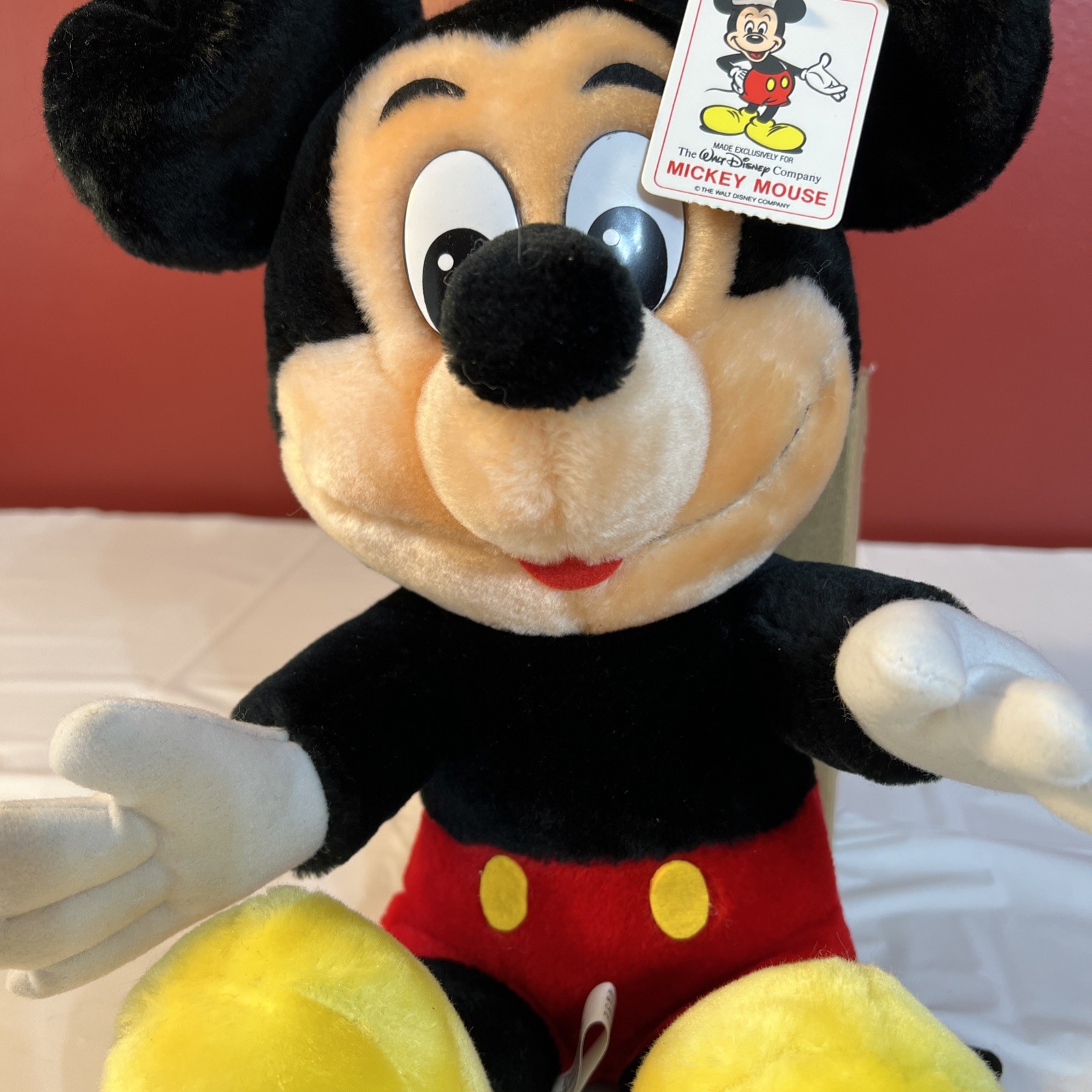 The VTG Disneyland Walt Disney World Mickey Mouse plush with hard eyes is a nostalgic collectible from the 1980s-1990s era. This 11" seated plush toy features the iconic character Mickey Mouse, with realistic hard plastic eyes that add a unique touch to the design. Manufactured in Korea, Republic of, this plush toy captures the charm and nostalgia of Disney's beloved franchise. Perfect for Disney enthusiasts and collectors looking to add a special piece of Disney history to their collection.