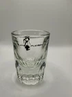 This vintage shot glass is a collectible item featuring the Playboy "Femlin" character holding a club key, likely originating from the 1960s or 1970s Playboy Clubs. Features a black graphic of a kneeling pin-up girl ("Femlin") holding a key, with "PLAYBOY" printed repeatedly around the top rim.Clear, thick glass with a heavy weighted bottom.