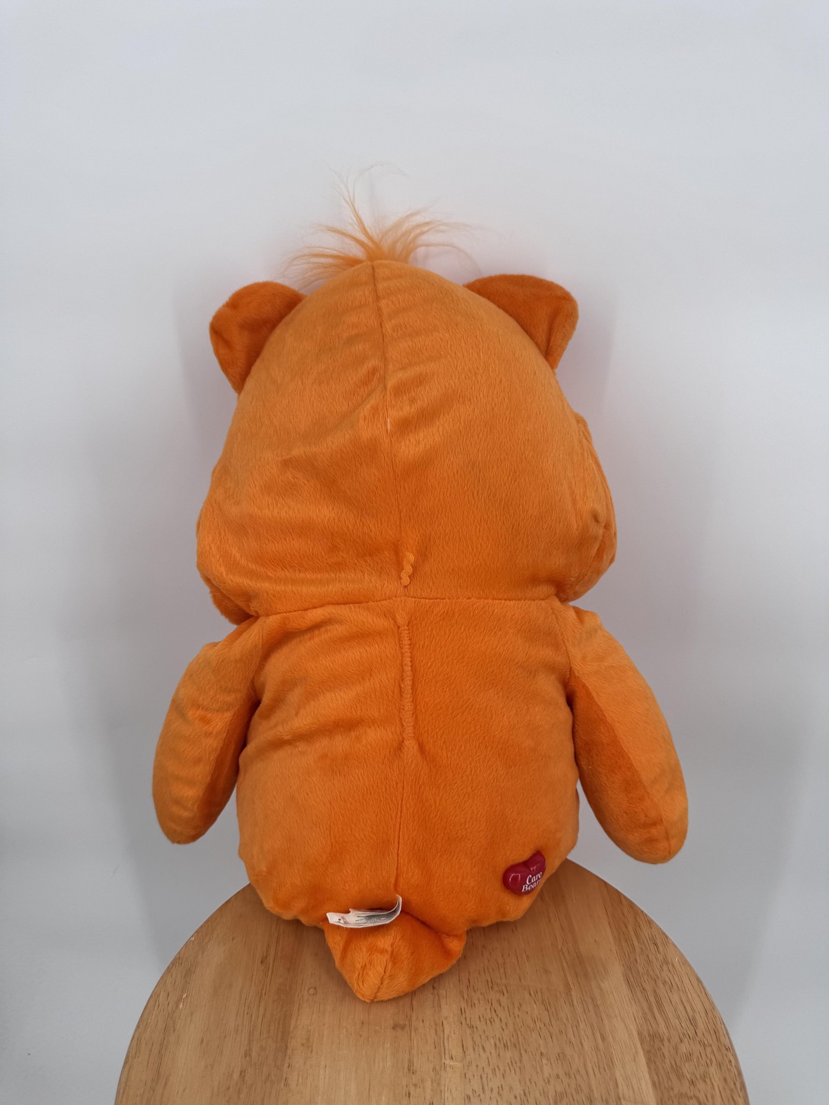 VTG 2005 Nanco Care Bears Funshine Bear Orange Plush Stuffed Animal Large 26Inch Preowned vintage plush with light general wear from handling and display. Fabric feels soft and clean with some minor creasing and flattening to stuffing; white belly panel shows a few faint surface marks. Fabric tags are present but wrinkled with some print wear; no tears or holes, plastic heart nose and Care Bears heart logo on back are intact and secure, no cardboard hang tag included. Brand: Nanco, in collaboration with Care Bears. Character: Laugh-a-Lot Bear, an orange Care Bear with yellow smiling star belly badge. Item: Large plush stuffed animal bear toy with soft huggable body and embroidered face. Design details: Bright orange fur, tuft of hair on top of head, white muzzle and tummy, red heart-shaped nose, red heart paw pads on the bottoms of the feet, and an embroidered yellow star belly badge outlined in orange. Size: Large plush in the 24–36 inch class, designed as an oversized cuddle companion or display piece. Materials: All new materials with shredded polystyrene foam and polyester fiber filling, plush polyester shell for a smooth velvety feel. Care instructions: Tag states surface clean only; not recommended for children under 3 years of age. Manufacturer information: Nanco, Chelsea, MA 02150. Year and licensing: Care Bears and related trademarks 2005 Those Characters from Cleveland, Inc., used under license by Nanco. Tag details: Fabric information tag with MASS. LIC. 0161 REG. NO. PA-3652 and additional REG. NO. 11T-0392003, plus woven Care Bears side label and a red plastic Care Bears heart logo on the back. Country of origin: Shell made in China. Fun, nostalgic Care Bears collectible for fans, children, or as a cheerful accent in a bedroom or playroom. 112760