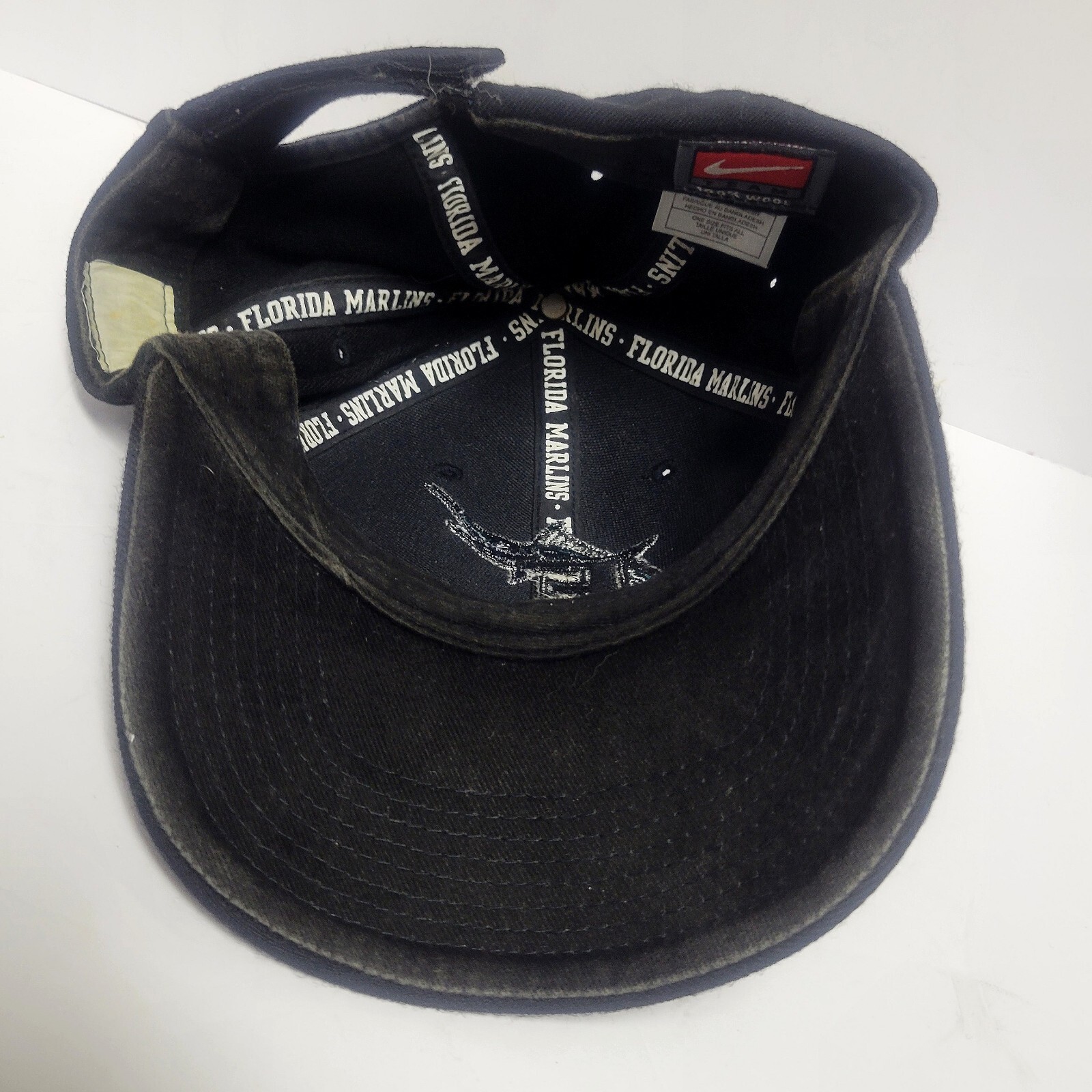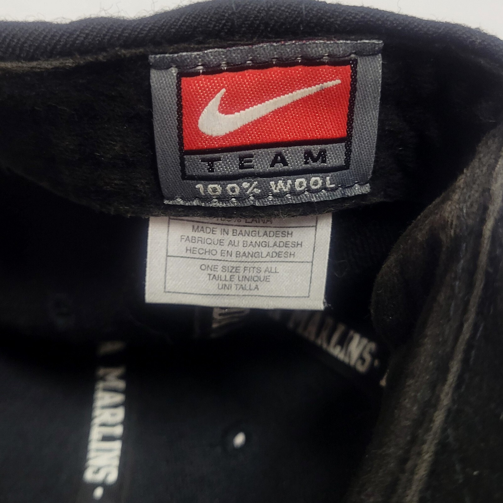Show off your love for the Florida Marlins with this vintage Nike Team hat. Made from 100% wool, this black cap features the team's big logo and is adjustable for a comfortable fit. Perfect for any Major League Baseball fan, this officially licensed cap is a must-have for the regular season. It has a capacity of 8 oz and is suitable for men. Get your hands on this Nike Team Florida Marlins Hat Cap Strapback MLB Baseball and show your support for the team in style.