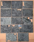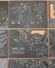 This vintage lot of 14 printing press plates is a must-have for any collector of antique printing equipment. The plates are perfect for display or for use in restorations. These maps show the Civil War, the Revolutionary War, the Presidential Election, and more. The pieces measure approximately 4 1/4 x 5 5/8 inches. Please look close and ask questions before bidding. Thank you for looking and please take time to check out our other auctions!!! SHIPPING. Approximately 90% of our material is re-used or recycled! Our US shipping and handling charges are stated individually in each auction and are determined by weight, size, and packing material. Please check our feedback from our satisfied customers. Payment is expected within 3 days of auction closing and feedback is given accordingly. Normally purchases will be mailed within 1-4 days after receipt of payment. RETURN POLICY Your satisfaction is very important to us. If we have made an error in listing or have misrepresented an item, please contact us within 14 days of receiving the item for a refund. Buyer pays return shipping fees. A refund will be issued after the item has been returned. A 15% re-stocking fee will be applied If the item is returned with no fault or error on our behalf We just recently opened this second store. We have been successfully operating for 13 years under our other store, 1manstrash2011. Please take a moment to check out all of those listings.