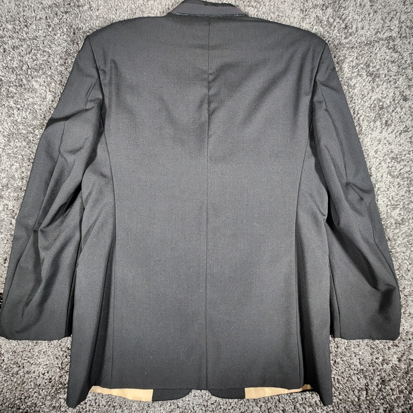 This VTG Chaps Ralph Lauren tuxedo jacket features a unique 4-button closure and sophisticated grosgrain trim notch lapels . Crafted for Jim's Formal Wear , this Made in USA blazer includes a gold-toned striped lining and jetted pockets . A classic formal essential , it offers a long fit perfect for black-tie weddings , proms , or special events . Check pictures and item specifics for details or contact us with any questions. If you like this item and would like to see more like it, click the link below to check out our store. 523 Supplier LLC | eBay Store Return Policy : Customer satisfaction is important to us. Good communication is crucial for eBay sales. Before leaving feedback, please notify 523 Supplier LLC about any concerns using eBay messaging. Items must be returned in original condition, with tags if applicable, or a restocking fee will be charged. Buyers are responsible for return postage . If the wrong item was shipped, we will refund the entire amount including return shipping.