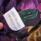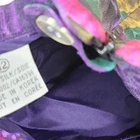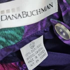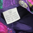 The VTG Dana Buchman 100% Silk Skirt is a vintage piece featuring a floral pattern in purple and pink, with a pleated design for added flair. This midi-length skirt is perfect for various occasions including travel, parties, and casual outings. Made from chiffon silk, it offers a lightweight and luxurious feel. The skirt is lined for added comfort, has a slit for a touch of allure, and comes with pockets for added functionality. Perfect for summer, fall, and spring, this skirt is a designer piece with a touch of bohemian and tropical themes.