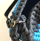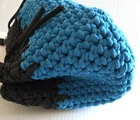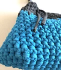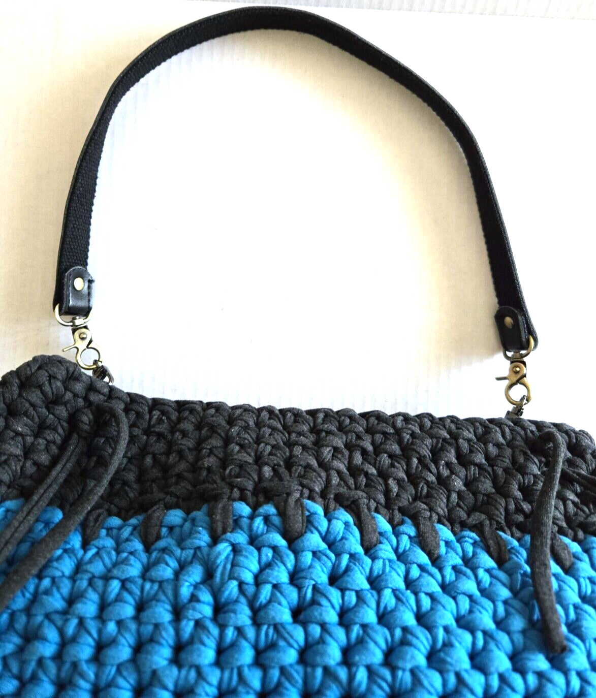 VTG Handmade Crochet Shoulder Bag Tight Knit Blue Black Boho Purse colorblock vibrant ble removable handle beautiful large crochet knots in great condition, no holes tears stains or smells, please see photos or further info The bag is 11” high by 16” wide, 5" in depth