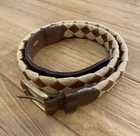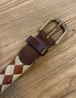 VTG Nordstrom Equestrian Leather Canvas Braided Belt SZ L (34) Made in Italy. The item pictured is the exact item you will receive. Good preowned condition. Light normal wear. *See pictures. Nice auburn brown genuine leather and canvas braid pattern, brass buckle, made in Italy. Tagged size large 34" to center hole 1 1/8" wide MI82