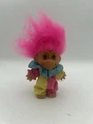 Step into a world of nostalgia with this charming lot of two vintage 1990's Russ Troll dolls, each standing at 4.5 inches with a playful jester outfit. These collectible figures boast delightful pink straight hair, a medium dark complexion, and warm brown eyes, capturing the essence of classic troll aesthetics. Ideal for collectors and enthusiasts, these dolls are gender-neutral and come as a set, making them a perfect addition to any collection or a wonderful gift for all occasions. The dolls are an embodiment of the fantasy theme from the '90s, complete with outfits that bring back the joy of childhood. With no packaging, these dolls offer a raw, authentic experience, transporting you back to a time of vibrant play and imaginative adventures. Embrace the allure of vintage collectibles with this enchanting duo, ready to join your assortment of whimsical treasure sku 430