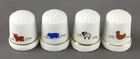 VTG Set of 4 Porcelain Farm Animal Country Décor Thimbles Pig Cow Chicken Sheep No breaks, cracks or chips