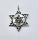 VTG Star of David Mother of Pearl & Marcasite Jewish Sterling Silver Pendant
