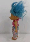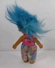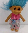 This vintage 6" Russ Berrie Troll doll features blue hair and brown eyes, with a straight hair type and a light complexion. It is a single unit doll made of hard vinyl material, and is part of the Trolls franchise with a gender-neutral doll gender. This original doll comes from the product line of Trolls and is a perfect addition to any doll collection. The doll size is 7 inches and it is an authentic antique item with a vintage touch. It is ideal for collectors and enthusiasts of all ages who appreciate the uniqueness of this doll.