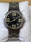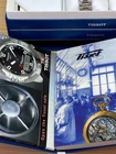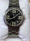 VTG Tissot Powermatic AutoQuartz ETA 205.111 Stainless Steel For Parts or Repair Beautiful, vintage Swiss-made Tissot Powermatic stainless steel watch was acquired with box and papers in order to sell for parts or repair. "Sapphire crystal sandwich" with sapphire crystals on both dial and exhibition screw down case back. Push/pull Tissot signed stainless steel crown easily sets the time and date. Black Arabic numeral on white background Date window at 4:30 dial position turns over promptly around midnight. Large, gorgeous retro-style black Arabic numerals at the 3, 6, 9 and 12 o'clock positions within cream rectangular fields are applied on the matte black dial. Cream baton indices at the remaining hour and minute positions. Stainless steel case with fixed bezel measures approximately 39mm in diameter. Integrated stainless steel case and bracelet with Tissot signed push button clasp. Extra links included in the original Tissot box to fit most wrists. Watch pillow, original proof of purchase, manual and brochures included in the box. Watch was preowned and contains scratches and signs of minor wear throughout. Watch contains Swiss-made ETA 205.111 seventeen (17) jeweled AutoQuartz movement which is currently not running. AutoQuartz ETA 205.11 compatible with ETA 205.911 and Omega Caliber 1400 "Omegamatic" movements. Tissot signed automatic rotor spins freely and movement is visible through exhibition case back. Sold As Is. Non-running watch for parts or repair. See photos for condition. No Returns. I make no guarantee or warranty as to the level of their function, of running condition, the accuracy of time, water proof and resistance, or functioning parts, gaskets, etc.