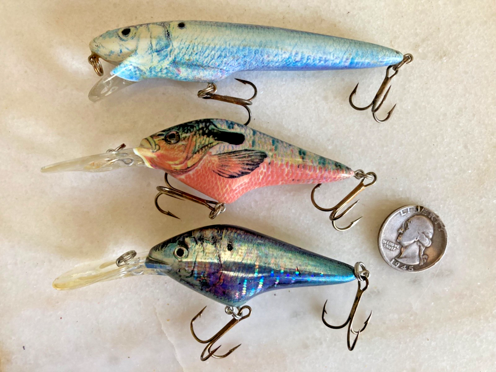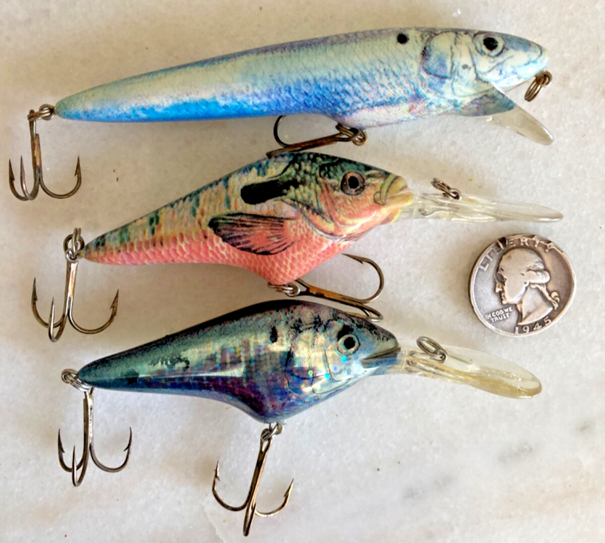 HOOKED-ON-VINTAGE IS SO PLEASED TO OFFER THIS VTG lot 3 BERKLEY FRENZY CRANKBAITS PHOTO FINISH FISHING LURES MIX DIVERS RATTLES SORRY THE U.S. QUARTER IS NOT INCLUDED WITH THIS RARE LOT OF 3 BERKLEY FRENZY CRANKBAITS FISHING LURES SUPER-SIZED PHOTOS. THIS LISTING IS FOR THESE RARE CRANKBAITS / LURES, AS SHOWN IN THE PHOTOS, SOLD AS SHOWN IN THE SUPER-SIZE PHOTOS. I HAVE OTHER GREAT VINTAGE FISHING GEAR FOR SALE ON EBAY CURRENTLY, AND WE LOVE TO COMBINED THE SHIPPING TO SAVE YOU MONEY AND ALLOW YOU TO GET ALL THAT YOU WANT FOR YOUR COLLECTIONS, OR FOR GIFT GIVING. SOLD AS IS, AND AS SHOWN IN THE SUPER-SIZED PHOTOS. Please email us with any questions! Thank you for looking!