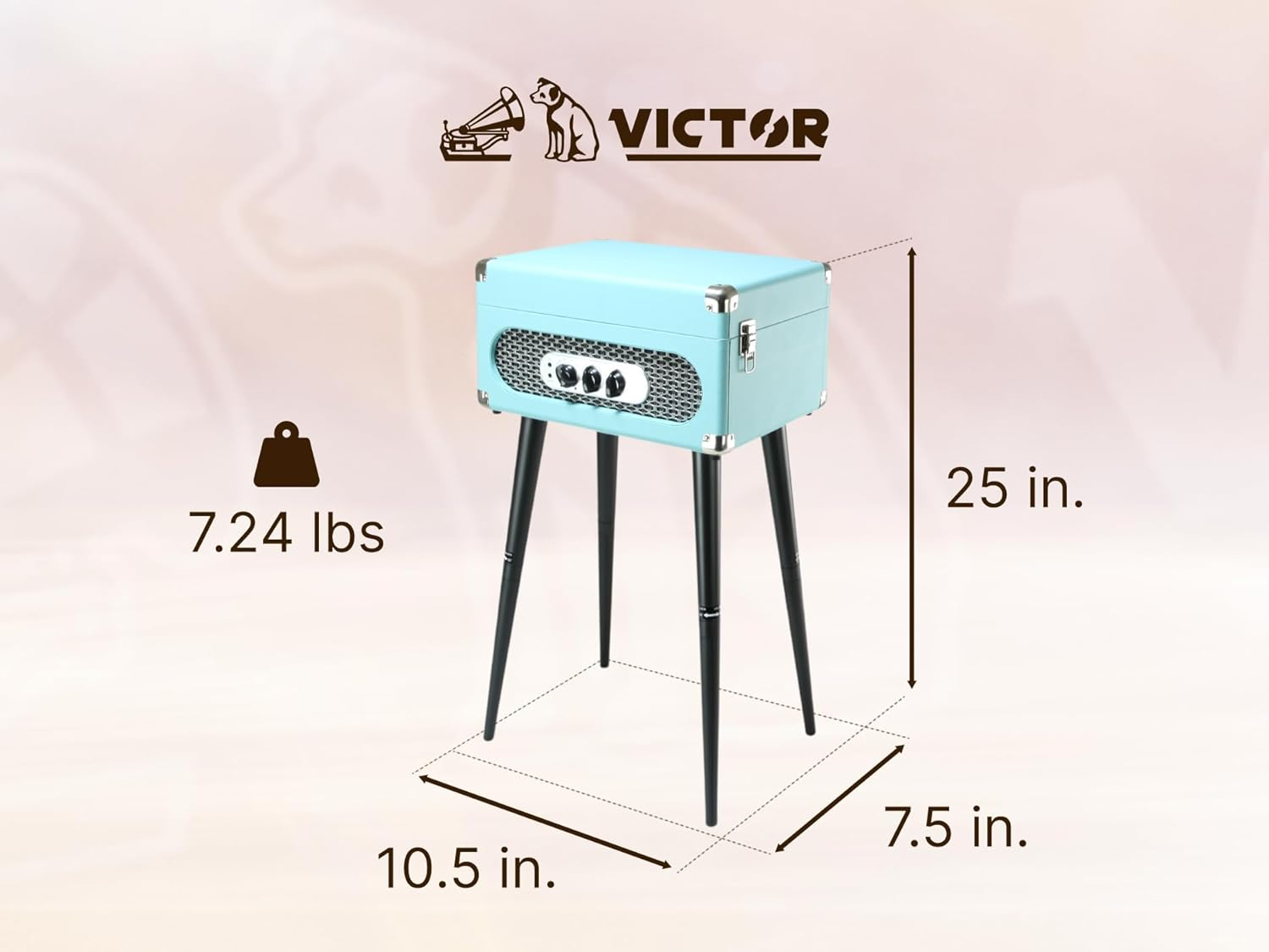 Store New Arrivals Add to Favorite View Feedback Contact VWRP-3200 Andover 5-In-1 Turntable with 3-Speed Record Player, FM Radio, Bluetooth, Built-In Speakers, and Chair-Height Legs – Perfect for Vinyl Lovers and Retro-Inspired Home Decor Description Item model number VWRP-3200-TQ Style retro Maximum Rotational Speed 78 RPM Color Turquoise Product Dimensions 13.9 x 15.8 x 35.7 inches Material Plastic Country of Origin China Item Weight 7.24 Pounds Connectivity Technology Bluetooth Model Name Andover Special Feature Built-In Bluetooth Receiver Included Components product, manual 5-IN-1 TURNTABLE SYSTEM FOR VERSATILE PLAYBACK -- The Victor VWRP-3200 Andover combines a 3-speed turntable, FM radio, Bluetooth streaming, and built-in stereo speakers, offering multiple ways to enjoy your favorite music in one stylish unit. 3-SPEED RECORD PLAYER FOR VINYL LOVERS -- This turntable plays 33 1/3, 45, and 78 RPM records, giving you the flexibility to enjoy a variety of vinyl formats, from classic albums to modern pressings. BUILT-IN FM RADIO FOR CLASSIC BROADCAST LISTENING -- Tune into your favorite FM radio stations with the built-in tuner, offering access to music, news, and talk shows with the nostalgic charm of a retro record player system. BLUETOOTH CONNECTIVITY FOR WIRELESS STREAMING -- Easily stream music wirelessly from your smartphone, tablet, or any Bluetooth-enabled device, providing the convenience of modern music streaming through a vintage-inspired setup. BUILT-IN STEREO SPEAKERS FOR RICH SOUND -- The VWRP-3200 features built-in stereo speakers, delivering high-quality audio without the need for external speakers, making it an all-in-one music solution for your home. STYLISH CHAIR-HEIGHT LEGS FOR MODERN RETRO LOOK -- Designed with chair-height legs, this turntable not only delivers great sound but also serves as a stylish piece of furniture, blending modern and retro aesthetics for a unique addition to any room. RCA OUTPUTS FOR CONNECTING EXTERNAL SPEAKERS -- For those looking for an enhanced audio experience, the VWRP-3200 includes RCA outputs, allowing you to connect external speakers for richer, fuller sound. EASY ASSEMBLY FOR QUICK SETUP -- The VWRP-3200 comes with easy-to-assemble legs, allowing you to quickly set up the turntable and enjoy your music in no time, adding both style and functionality to your space. Product Description 1 3-Speed Record Player 2 FM Radio 3 Connectivity Options 1 Bluetooth Out 2 Bluetooth In 3 Headphone Jack 1 Quality Stereo Speakers 2 Secure Latch Mechanism 3 Made To Fit Your Space Product Dimensions Product Specifications Turntable Speed: 33/45/78 RPM FM Frequency Range: 87.5 - 108 MHz Bluetooth Version: Bluetooth V 5.1 Input: AUX Input Output: Line Out, Headphone x 1 Power Source: AC/DC 100-240V 12V/1.5A Accessories Included: ETL Approved Power Adaptor, Aux-In Cable, 45 RPM Adaptor, User Manual, Quick Setup Guide ABOUT US We offer the best prices around on high quality products. Our E-store includes media such as books, movies, music and games while offering electronics, toys, sporting apparel, clothing, tools, general home, garden items and more. SHIPPING We are always working hard to ensure your package arrives as soon as possible. Please understand that some factors like weather, high postal traffic, and the performance of shipping companies are outside of our control. We offer free shipping to the lower 48 states and ship within 2 business days of payment, usually sooner. We do not accept P.O. Boxes. Please provide a physical address. For shipping outside of the continental USA, we only use eBay's Global Shipping Program.The item is shipped to KY and then sent to the rest of the world. International customers are responsible for all duties and taxes. Continue to check out in order to calculate costs for shipping the item to your country. Messages regarding eBay's Global Shipping Program MUST be directed at eBay EXCLUSIVELY. RETURNS We offer a 30-Day Return Policy on items which you are not completely satisfied with. You have the option for a full-refund or an exchange of the item. No returns are available on items shipped outside of the USA. PAYMENT We accept PayPal. CONTACT US This page content is yet to come Please ad us to your favorite seller and visit again later Thank You CUSTOMER SATISFACTION We try our very best to make sure every customer is completely satisfied. If there's a problem, message us! We're happy to help. WE ACCEPT Copyright © 2021 AutoDS. | All Rights Reserved