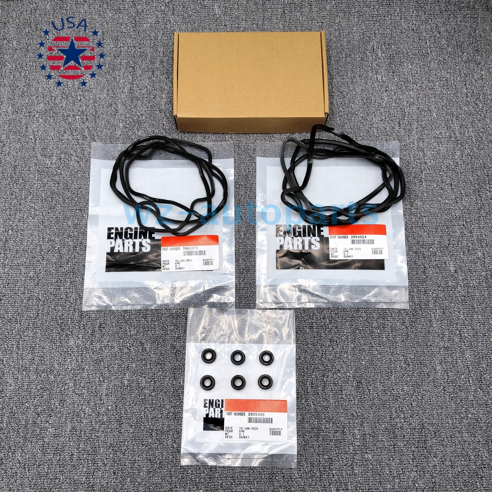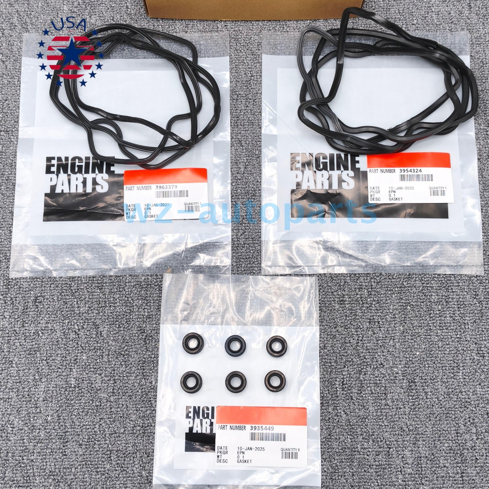 Product Description Product Description ● Condition: NEW ● Manufacture Part Number: 3954324, 3963379, 5086954AA, 5114418AA ● Compatible with: For : 03-05 Dodge Ram Cummins 5086954aa 3963379 3954324 Brand New and High Quality Package included: Valve Cover And Rocker Box Gasket Kit ( As shown in the picture ) Notice : 1. If you are not completely satisfied with your purchase, you may return it for a refund or exchange it for a replacement. We only require that you contact us within 14 days of receiving your item and return it in the same condition it was received. 2.Please check the model before your purchase and compare the position of the screw hole In case of wrong purchase. 3.If you have any questions, please contact us by email and we will solve them for you. Payment Shipping Contact Us FeedBack Return We support multiple payment methods You can use Paypal or a credit card with VISA or MasterCard logo or apple pay or Googel pay. 1.We generally ship with usps and Fedex. 2.Your item will be carefully packed and shipped within 3 business day after payment received. 3. Package transit time: please expect 3-7 business days within US. Buyer need express mail service please contact us before placing the order. International transportation services are temporarily not available. If you're looking to buy in bulk or looking for a long term part supplier, please contact me directly. We will provide you the best products and service. Put off your doubts and fears and thusrest assured purchase. We offer 100% Customer Satisfaction , if you have any questions , please let us know and we will do our best to rectify the situation . We fully stand behind with all the items that we are selling ! When you receive your item , please leave positive feedback , we rely on you for our good name. 1. Please leave positive feedback to us if you are satisfied with the goods. 2. If you are not satisfied, please contact us immediately and we will try our best to give you a perfect answer at the first time. 3. Please feel free to contact us via the ebay messages system, if you have any question, we will assist you ASAP. 1. Please read the item description and check the pictures carefully before bidding. Return or refund is available only if item DOA or there's error in item description causing the item not fitting your need. In such cases, seller pays for all related shipping cost if any. 2.Returns are also acceptable if buyer purchased this by mistake and item still in good condition for reselling. Buyer is responsible for all related shipping cost. Payment We support multiple payment methods You can use Paypal or a credit card with VISA or MasterCard logo or apple pay or Googel pay. Shipping 1.We generally ship with usps and Fedex. 2.Your item will be carefully packed and shipped within 3 business day after payment received. 3. Package transit time: please expect 3-7 business days within US. Buyer need express mail service please contact us before placing the order. International transportation services are temporarily not available. Contact Us If you're looking to buy in bulk or looking for a long term part supplier, please contact me directly. We will provide you the best products and service. Put off your doubts and fears and thusrest assured purchase. We offer 100% Customer Satisfaction , if you have any questions , please let us know and we will do our best to rectify the situation . We fully stand behind with all the items that we are selling ! When you receive your item , please leave positive feedback , we rely on you for our good name. FeedBack 1. Please leave positive feedback to us if you are satisfied with the goods. 2. If you are not satisfied, please contact us immediately and we will try our best to give you a perfect answer at the first time. 3. Please feel free to contact us via the ebay messages system, if you have any question, we will assist you ASAP. Return 1. Please read the item description and check the pictures carefully before bidding. Return or refund is available only if item DOA or there's error in item description causing the item not fitting your need. In such cases, seller pays for all related shipping cost if any. 2.Returns are also acceptable if buyer purchased this by mistake and item still in good condition for reselling. Buyer is responsible for all related shipping cost. OEM 3pcs Car Hood Support Prop Rod Holder Clip For Honda Accord Odyssey Prelude 7.22 USD Free shipping OEM 50x Fender Liner Retainer Fastener Clips 91512-SX0-003 For Honda New 7.67 USD Free shipping OEM! GAS CAP 310103L600 For 06-17 Hyundai Sonata Elantra Azera Santa Fe Veloster 12.66 USD Free shipping OEM! Solenoid Spool Valve Gasket Kit for VTEC K-series Honda CRV Accord Element 7.99 USD Free shipping OEM! New Gas Fuel Cap For Kia 31010-3L600U US 7.19 USD Free shipping OEM PCV Valve For 13-21 Honda Accord Odyssey Pilot Acura MDX 17130-RCA-A02 USA 7.56 USD Free shipping