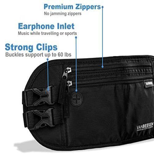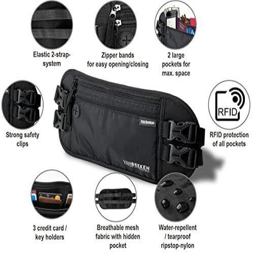 FREE SHIPPING 30 DAYS RETURN EASY PAYMENT Van Beeken Rfid Travel Money Belt Hidden Money Belts for Travel for Men and W... VAN BEEKEN RFID Travel Money Belt Hidden Money Belts for Travel for Men and Women I Travel Belt Money Pouch Slim Travel Fanny Pack I Waist Bags Waist Wallet Running Belt Wallet Waist Pouch (Black) Description and features Light-weight premium-quality RFID blocking VAN BEEKEN travel wallet with RFID protection You’ve probably been there While traveling you worry about what to do with your travel accessories / travel essentials You would your valuables securely stored, but haven’t found a travel money belt, travel pouch or hidden travel wallet yet which is secure and comfortable Then our VAN BEEKEN slim belt wallet is the perfect choice for you How are our waist bags different from other wallet belts you can find on ? Premium Quality: Damaged seams, self-opening buckles, separated zippers and flimsy waist straps. We know all weak points of cheap hidden money belts for travel for women and men. With that in mind we created a slim RFID travel fanny pack and promise genuine VAN BEEKEN premium quality No shifting or sagging: Think of a modern money bag / running waist belt, which doesn’t shift around while moving. Our unique design will hardly let you know you’re wearing it. The 2-strap-system ensures a great fit and keeps this your money belt firmly in place. It comes with fully adjustable and elasticized waist straps, suitable for waist sizes 27-55 inches Elegant slim sleek design: The travel belt / money pouch combines a sleek and stylish design with functional, high quality features. While wearing it hidden beneath your clothes this slim waist pouch / running belt keeps all personal belongings close and concealed. The soft and breathable back of this money belt makes it comfortable on your skin. The RFID blocking feature prevents unauthorized scanning of your credit cards REVIEWS The product came very well packaged. I'm very happy. thank you for everything. Seller strongly recommended. This is great! I definitely recommend! Product looks amazing Delivery was fast. Excellent seller, great communication. I advise everyone