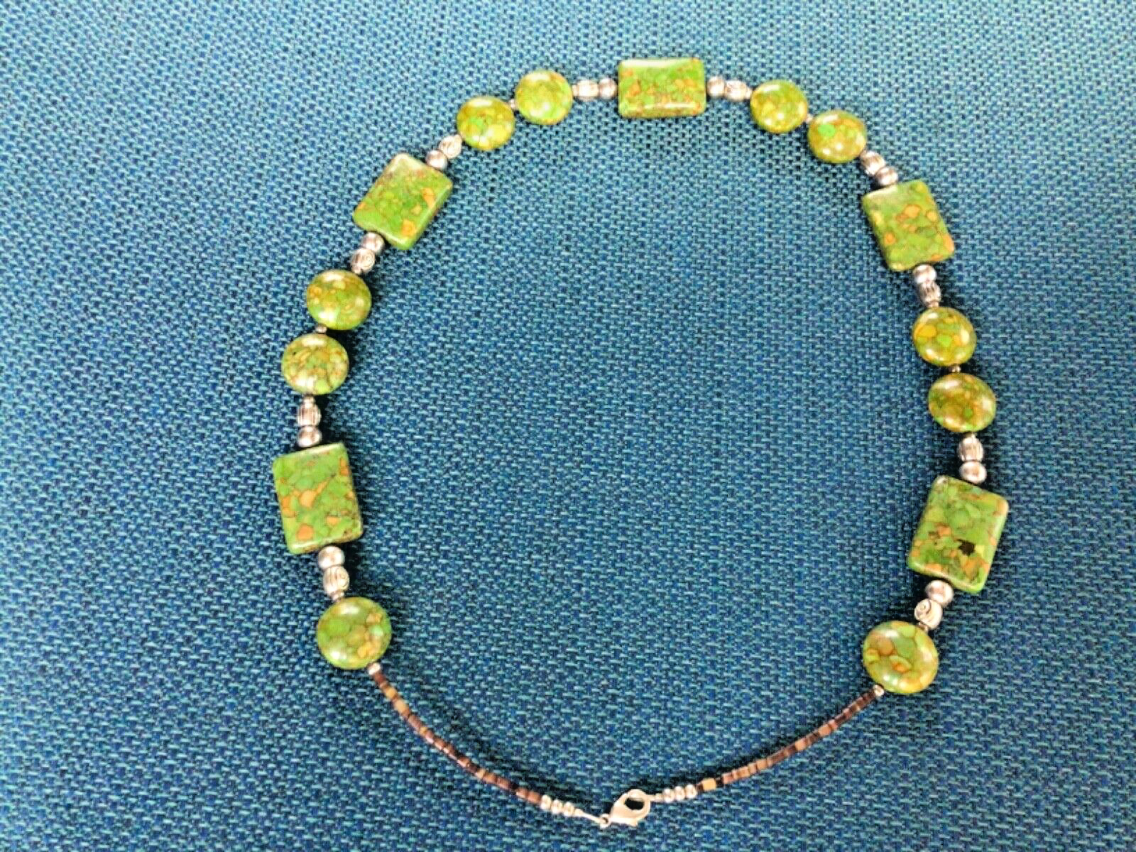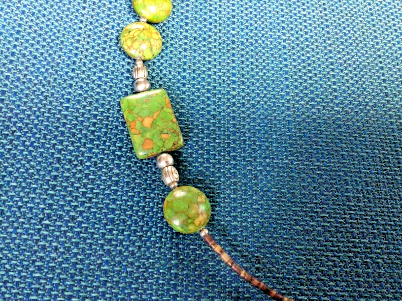 VARIEGATED GREEN STONE NECKLACE 23” LONG. From a pet and smoke free home