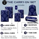 Welcome to the world of organized travel! This 6 piece set of compression packing cubes are your new travel essentials. These lightweight cubes are easy to use and perfect for both women and men who appreciate cute travel accessories. Parents, say goodbye to messy luggage and hello to neatly organized kids' items during travel. These travel compression bags for packing are not just cute, they are durable and made with top quality zippers. Essential for Travel: This 6 Piece Compression Packing Cubes Set is a must-have for any trip and travel- especially useful as a backpack, luggage and suitcase organizer . The expandable organizers can be used for organizing your various outfits or use a two zipper system to maximize space in your luggage bags without sacrificing the number of items you can bring. The travel cubes are designed to fit perfectly into your suitcase, making packing for your vacation essentials easier. Space Saver & Luggage Organizer: The compression packing cubes travel set is designed to fit multiple outfit options for your travel: Large Cubes for jackets, sweaters, and pants, Small for shirts, and blouses, Tube Cube for underwear, socks, swimsuits etc., drawstring bag can be used as a shoe bag or laundry bag to separate your dirty/wet clothes or simply use as a travel backpack to carry items to the beach or hikes during your trip. Perfect for beach vacation, Europe trips or ski trips. Lightweight & Water Resistant: The compression packing cubes travel set is made from water-resistant fabric with smooth metal zippers. These travel bags will keep your belongings safe and dry, making them a must-have on your cruise must-have packing list. Ideal Gift for Travelers: Being one of the international travel must haves, these travel cubes make a perfect gift for anyone in love with traveling. It's an essential addition to any cruise must haves packing list. Trendy Design: Not only practical, the set boasts a trendy design that aligns with your fashion sense. It's great for a Europe trip or a beach vacation, showing off your style while providing the functionality you need.